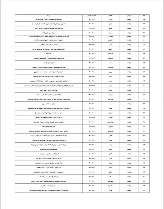 به گزارش خبرگزاری ایمنا از کرمانشاه، شرکت توزیع برق استان کرمانشاه طی جدولی، زمانبندی قطعی برق در مناطق مختلف استان کرمانشاه را برای امروز _شنبه بیستوهفتم بهمن_ اعلام کرد که در اطلاعیه آمده است: