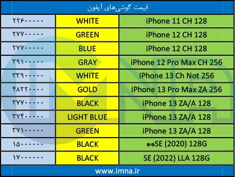 دانلود لیست قیمت گوشی‌های آیفون (فایل گرافیکی در اندازه اصلی)