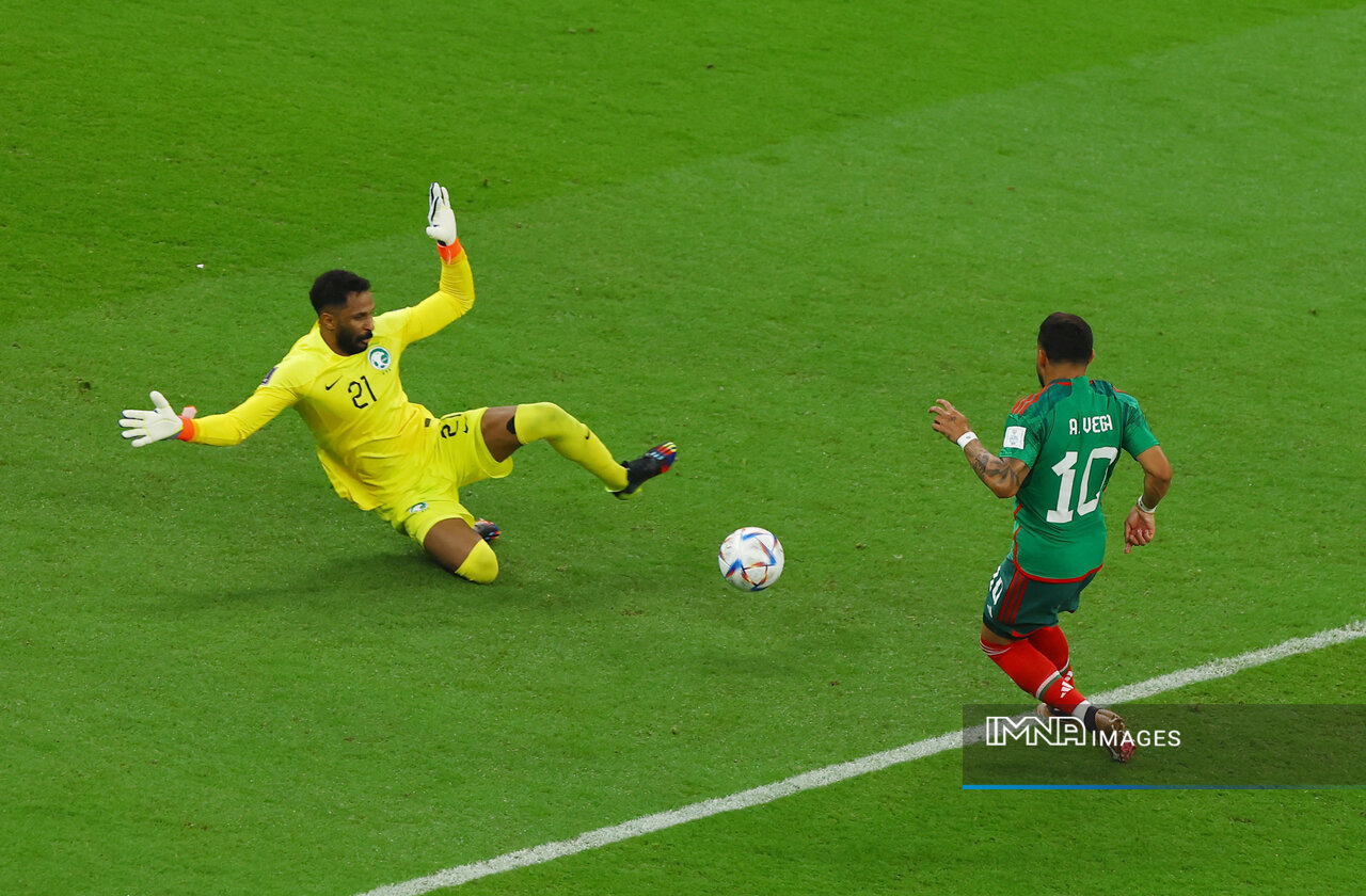 ۲-۱ (دقیقه ۹۶- عربستان) - همکاری دو نفره بازیکنان عربستان پشت محوطه جریمه مکزیک به ثمر نشست و سالم الدوساری در موقعیتی تک به تک توانست دروازه اوچوآ را باز کند.