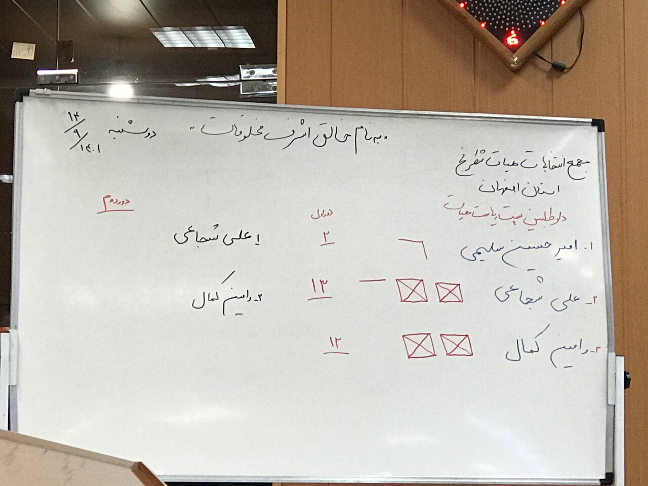 در مرحله دوم رأیگیری علی شجاعی ۱۴ رأی و رامین کمال ۱۳ رأی کسب کردند و علی شجاعی با یک رأی بیشتر به عنوان رئیس هیئت شطرنج استان اصفهان برگزیده شد.
