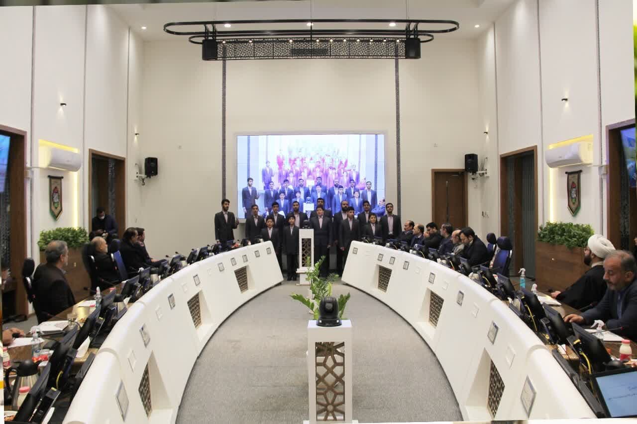 پیش از آغاز جلسه شورا، گروه سرود آوای مهر طاها با حضور در صحن علنی دو قطعه مرتبط با ایام فاطمیه و شهادت سردار سلیمانی اجرا کردند.