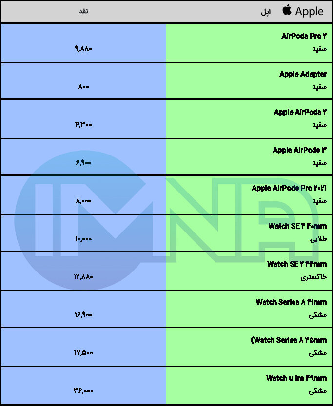 دانلود لیست قیمت گوشی‌های آیفون (فایل گرافیکی در اندازه اصلی)