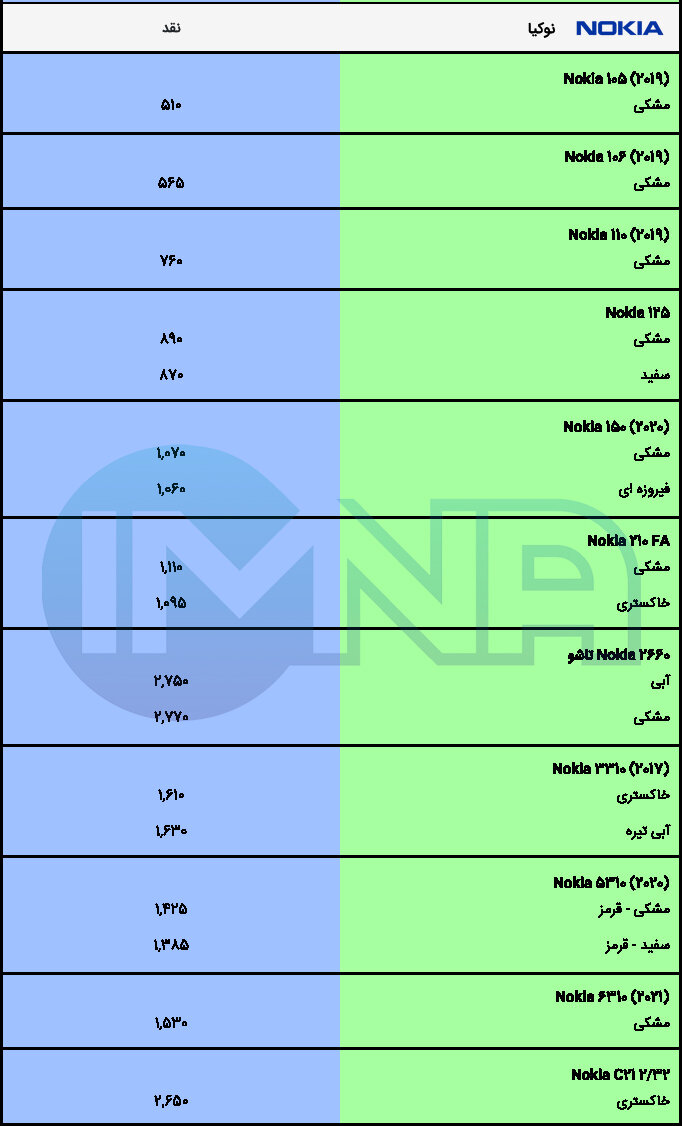 دانلود فهرست قیمت نوکیا (فایل گرافیکی در اندازه اصلی)