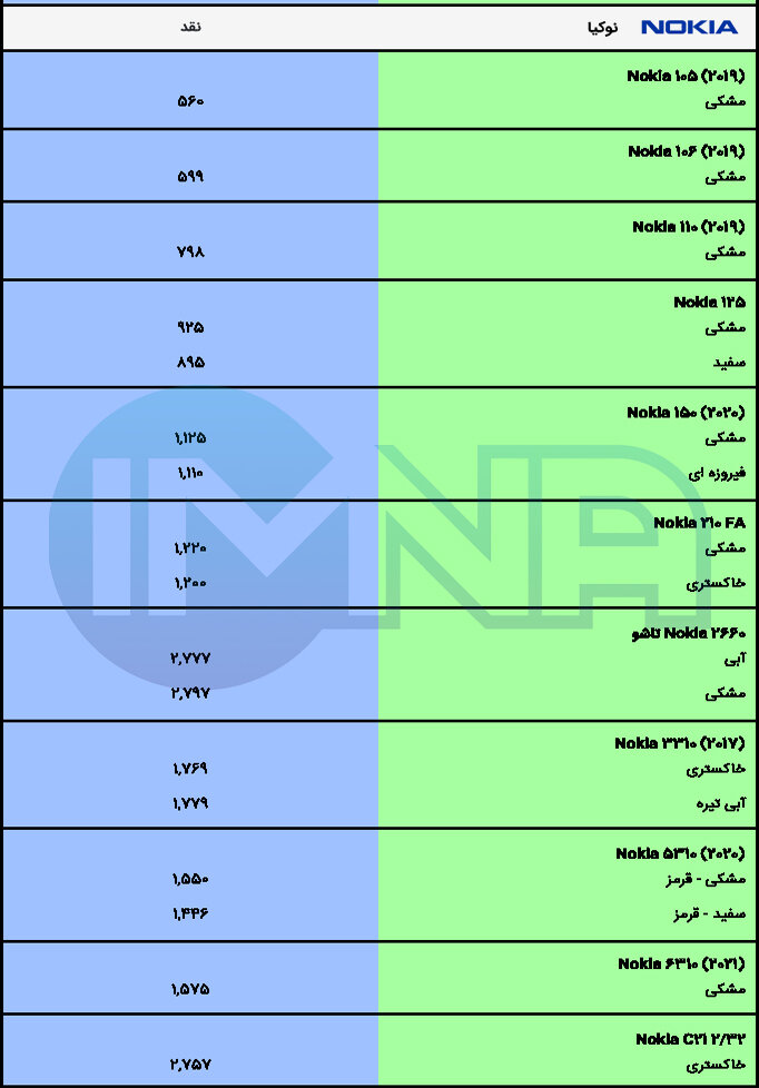دانلود فهرست قیمت نوکیا (فایل گرافیکی در اندازه اصلی)