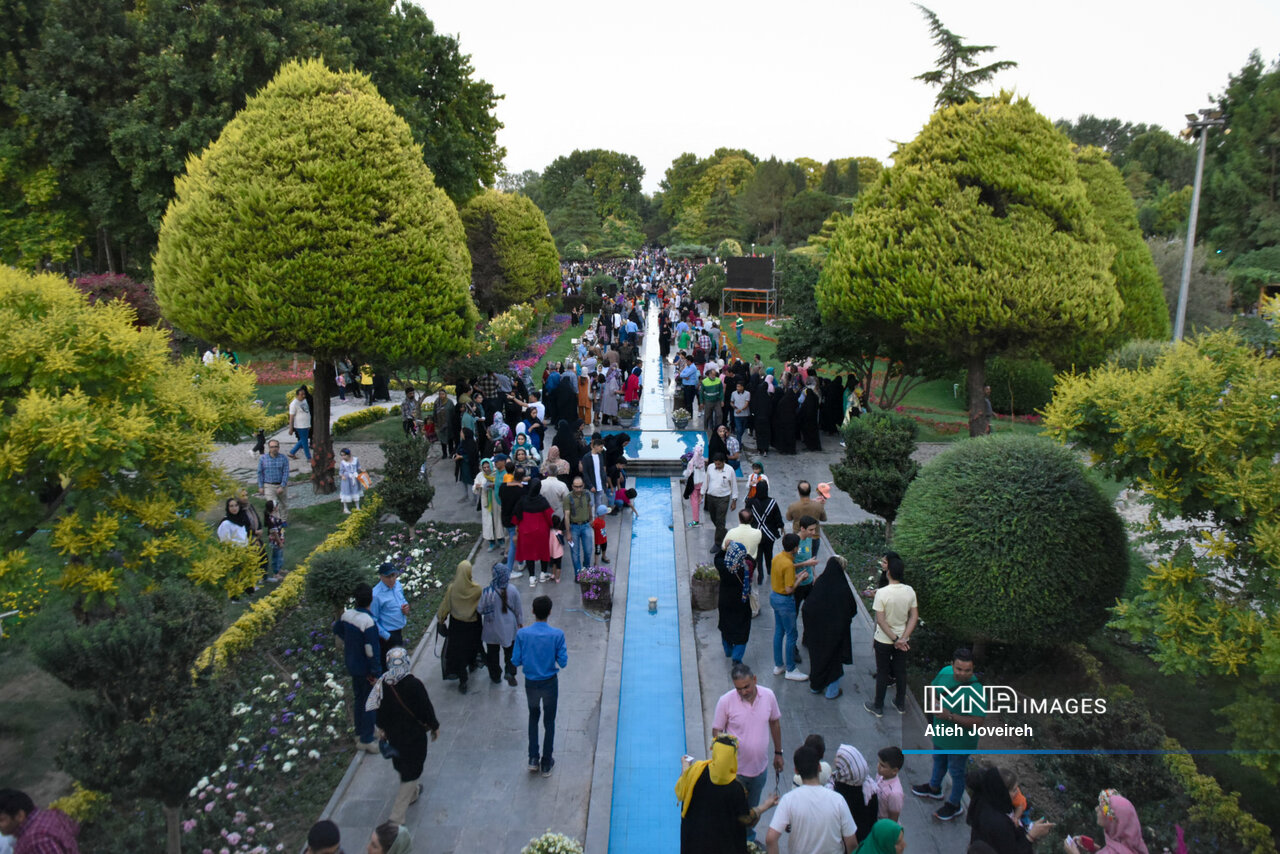 شور و نشاطی در باغ گلها جریان دارد، یکی از زیبایی باغ میگوید، دیگری خاطرات حضور در اصفهان رویایی را بازگو میکند و نفر دیگر از خنده توان صحبت ندارد، چند نفر از جوانان با گوشی خود در حال ثبت این شب خاطرهانگیز هستند. بازار عکسهای سلفی در میان گلهای رنگارنگ داغ داغ است. پاسی از شب گذشته است، اما میهمانان برنامه به شدت و با شور خاصی مراسم را دنبال میکنند.