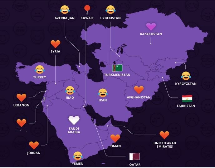 بیشترین کاربری هر ایموجی در نقاط مختلف دنیا
