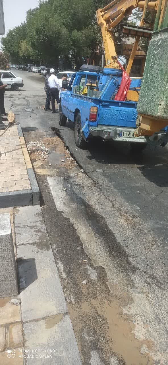 لوله آب خیابان حکیم‌نظامی اصفهان دچار شکستگی شد / تلاش شهرداری برای ترمیم