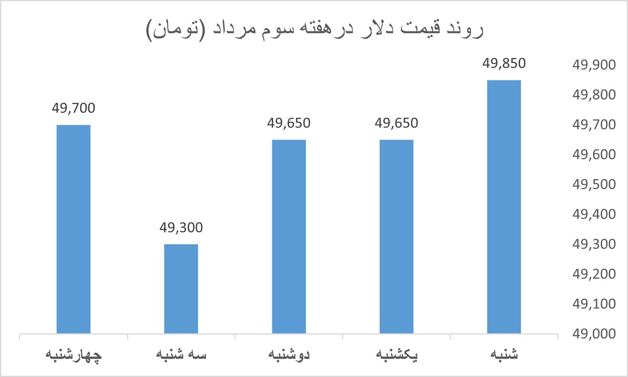 به گزارش خبرنگار ایمنا، قیمت دلار در اولین روز هفته به کانال ۴۹ هزار تومان برگشت و با قیمت ۴۹ هزار و ۸۵۰ تومان در بازار آزاد معامله شد. روند کاهشی قیمت دلار همچنان تا آخر هفته ادامه داشت به طوری که قیمت دلار تا روز پنجشنبه با کاهش ۴۰۰ تومانی همراه بود و در نهایت به ۴۹ هزار و ۴۵۰ تومان رسید. قیمت یورو در بازار آزاد نیز از ۵۴ هزار و ۸۰۰ تومان در روز شنبه به ۵۴ هزار و ۶۰۰ تومان تا روز پنجشنبه رسید.