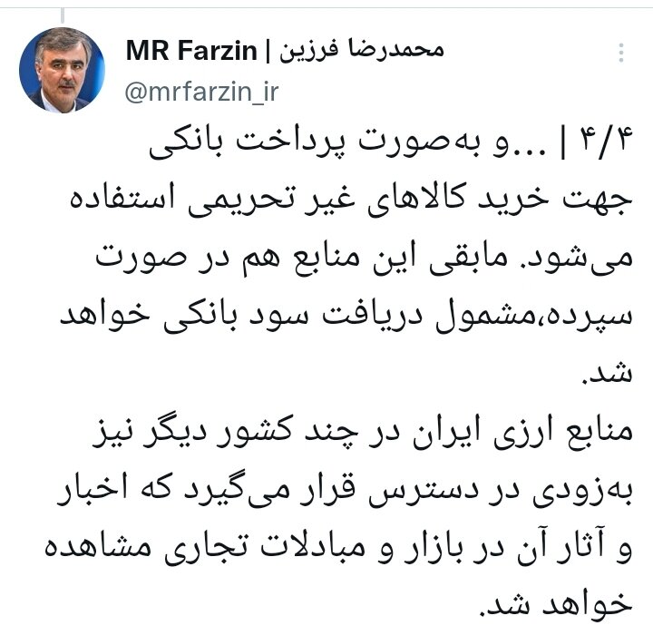 لازم به تاکید است منابع ارزی ایران در چند کشور دیگر نیز به زودی در دسترس قرار میگیرد که اخبار و آثار آن در بازار و مبادلات تجاری مشاهده خواهد شد.»