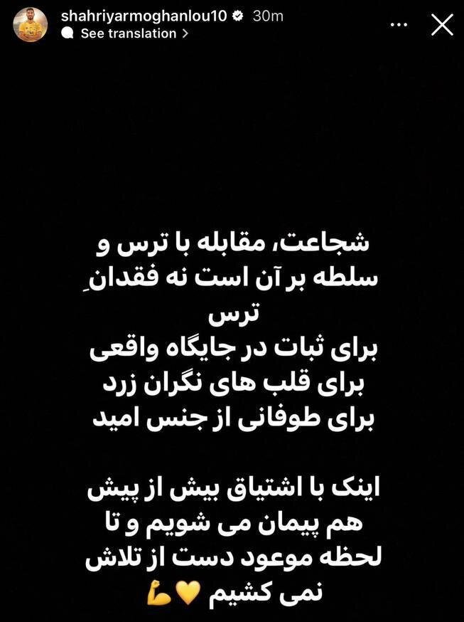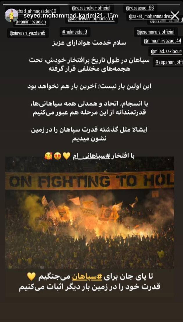 «بازیکنان عزیز سپاهان یادتونه به شما همیشه میگفتم که همه باید یاد بگیریم وقتی در این تیم بازی میکنیم با همه چی بجنگیم.