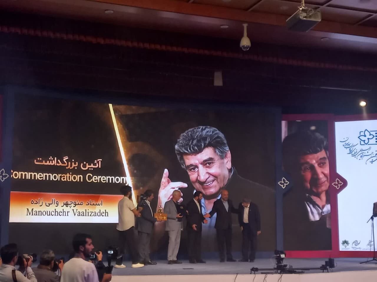 دقایقی پس از اعلام جوایز بخش بین‌الملل، صدایی آشنا که کودکی بسیاری از ما با آن گذشته در سالن پخش می‌شود و مجری اعلام می‌کند که زمان آئین بزرگداشت منوچهر والی‌زاده رسیده و مجری از صاحب این صدای ماندگار دعوت می‌کند.