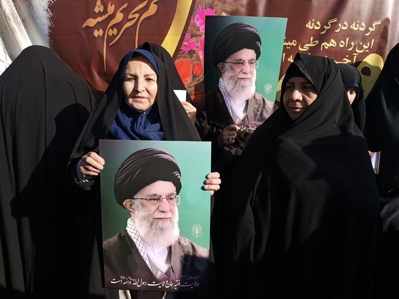 زهرا کریمی هم از مادرانی است که در مراسم شرکت کرده است، او میگوید: ما با امام و ولایت عهد و پیمانی دوباره میبندیم که دشمنان فکر نکنند ما از انقلاب زده شدهایم. ما همیشه پیرو خط ولایت فقیه خواهیم ماند.