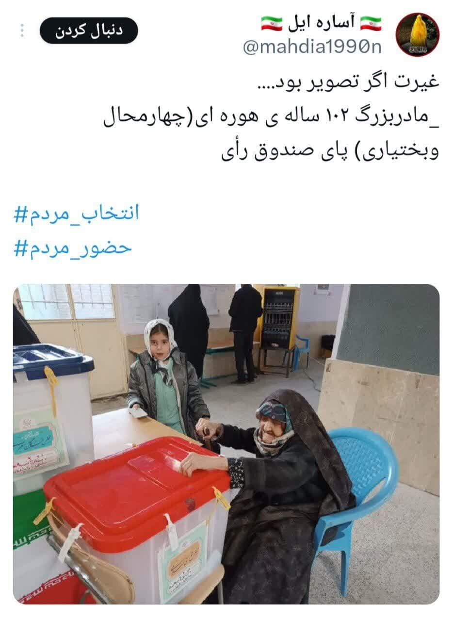 _مادربزرگ ۱۰۲ ساله هورهای (چهارمحالوبختیاری) پای صندوق رأی