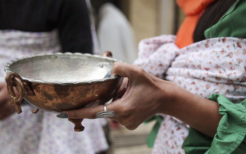 صاحب‌خانه با شنیدن صدای قاشق که به کاسه می‌خورد، جلوی در می‌آمد و داخل کاسه آن‌ها آجیل چهارشنبه‌سوری، شیرینی، شکلات، نقل و گاهی هم پول می‌ریخت.