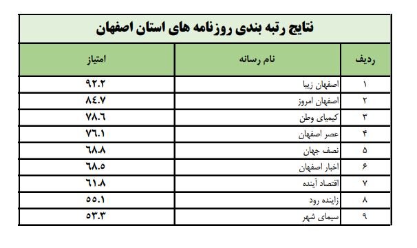 بنابر اعلام روابطعمومی معاونت امور رسانهای و تبلیغاتی، نتایج رتبهبندی در روزنامههای استانی به تفکیک استان و در روزنامههای منطقهای به تفکیک و بر اساس دفتر مرکزی هر روزنامه منتشر شده است؛ نکته مهم دیگر اینکه در صورت اعتراض، پرونده روزنامه مجدداً و از ابتدا در تمام شاخصها توسط داور دیگری ارزیابی شده، نمره به دست آمده (کمتر یا بیشتر) به عنوان امتیاز نهایی ثبت خواهد شد.