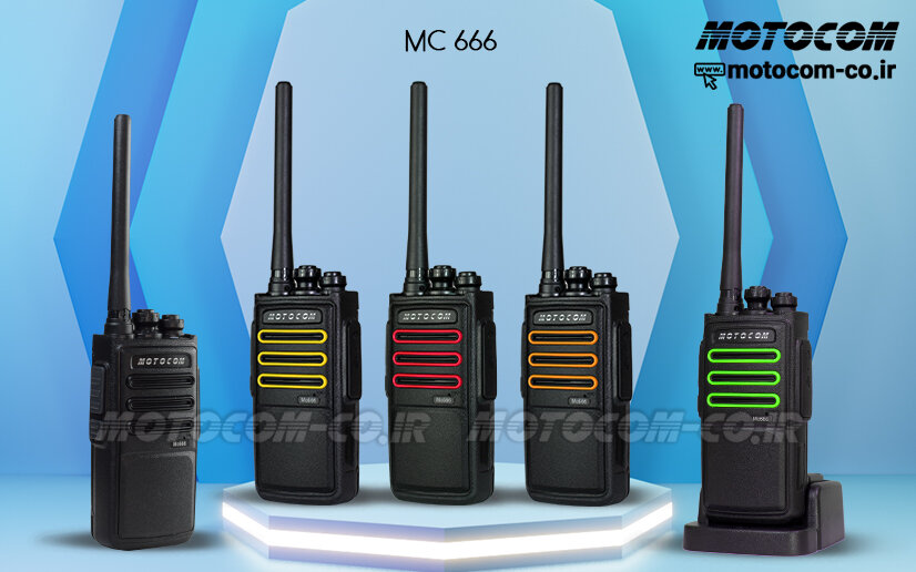 بیسیم واکی تاکی موتوکام مدل MOTOCOM MC666 تنها بیسیم رنگی می باشد که با 5 رنگ خاص قرمز، سبز، نارنجی، زرد و مشکی به بازار عرضه شده و برای افرادی که به دنبال یک دستگاه بیسیم با ظاهر منحصر به فرد هستند، بسیار مناسب است. بیسیم واکی تاکی موتوکام MOTOCOM MC666 دارای مجوز از سازمان تنظیم مقررات و ارتباطات رادیویی میباشد و برای استفاده از آن، نیاز به اخذ مجوز از هیچ ارگانی نیست. در این دستگاه از باطری لیتیومی با ظرفیت ۱۲۰۰ میلیآمپر استفاده شده است، که امکان شارژ توسط پایه شارژر رومیزی و همچنین کابل اندرویدی Port USB Android را فراهم میکند. بیسیم واکی تاکی موتوکام مدل MOTOCOM MC666 بهمراه گارانتی و خدمات پس از فروش عرضه می گردد. در زیر، سایر امکانات و مشخصات فنی این دستگاه ذکر شده است: