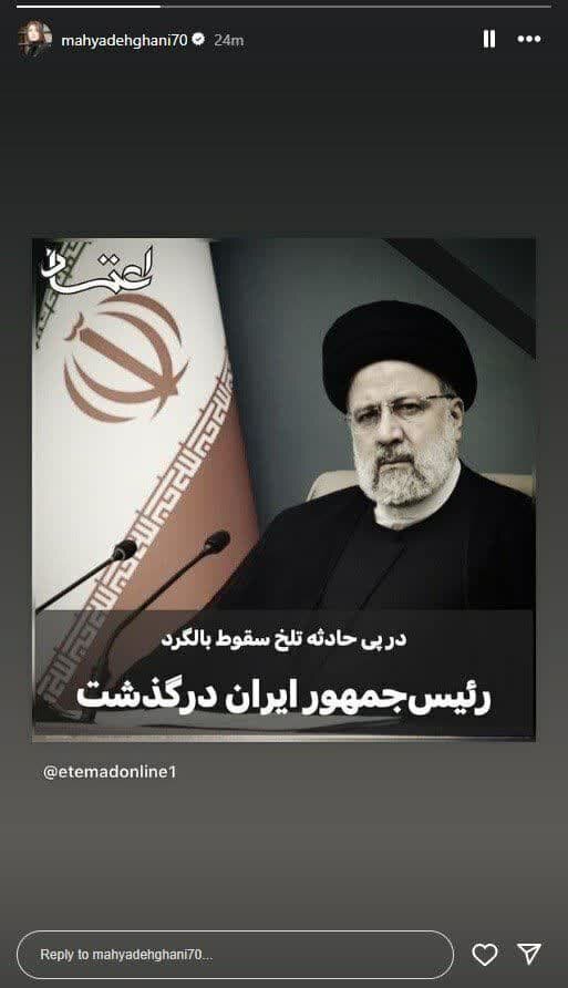 محیا دهقانی از بازیگران سینما و تلویزیون نیز نسبت به این خبر واکنش نشان داد: