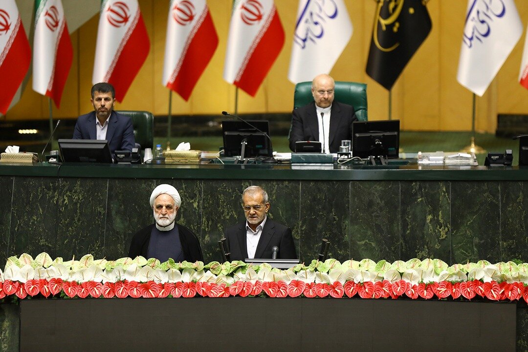 در نهایت وقتی پزشکیان گفت که عادی سازی روابط اقتصادی با جهان را حق مسلم ایران میدانم و برای رفع تحریمهای ظالم از پای نخواهم نشست دولت من هرگز تسلیم فشارها نمیشود و باید با مردم ایران با زبان تکریم صحبت کرد؛ نمایندگان «احسنت، احسنت» گفته و او را تشویق کردند که تشویق تعدادی از نمایندگان به صورت ایستاده بود.
