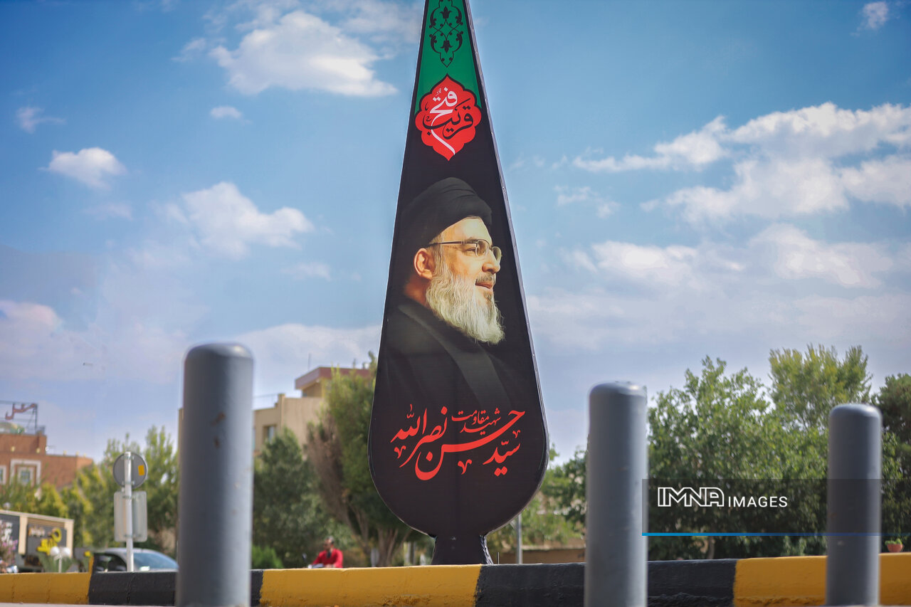 حمید قنادنیا در گفتوگو با خبرنگار ایمنا با بیان اینکه همزمان با تشییع پیکر شهید نیلفروشان، نصفجهان رنگ و بوی مقاومت گرفته است، اظهار کرد: تابلوهای اسلیمی منقش به تصاویر شهید سیدحسن نصرالله و سردار شهید نیلفروشان و پرچمهای حزبالله بهصورت تابلو روی پایههای روشنایی رفیوژهای رینگ ترافیکی اطراف شهر، بزرگراههای داخل و سطح شهر و زیرگذرها نصب شده است.