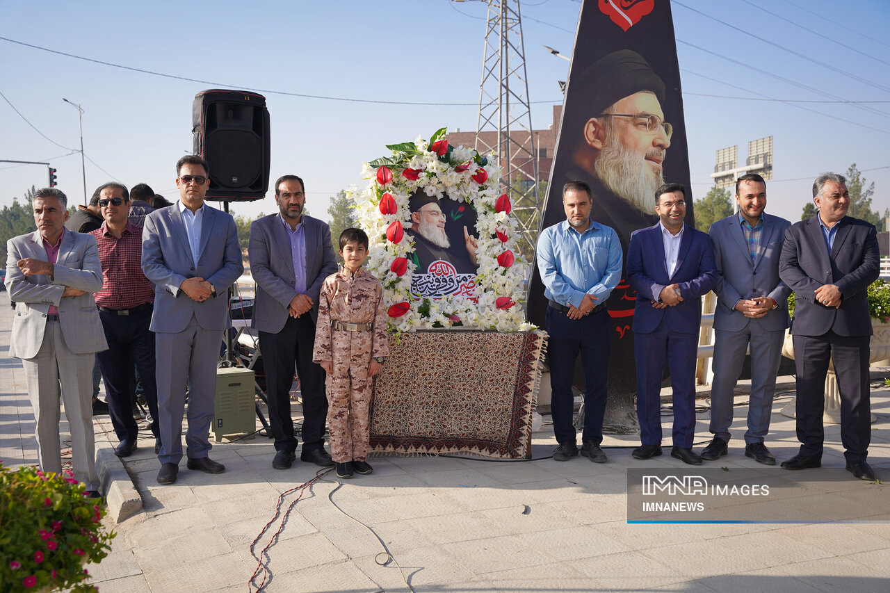 مراسم رونمایی از تابلوی معابری که به‌تازگی به نام شهید سید حسن نصرالله و سردار نیلفروشان و پل شهید اسماعیل هنیه نام‌گذاری شده است، با حضور مسئولان و مردم انجام شد.