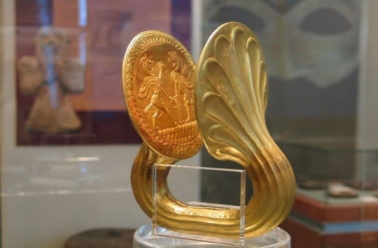 کشف اتفاقی تابوت مفرغی و اشیای باستانی از جمله حلقه طلایی، یک جام یا سینی منقوش و چند دکمه طلا و یک پایه آتشدان برنزی که کتیبهای به زبان عیلامی داشت، همه را به شگفتی واداشت؛ اما حلقه طلایی درون تابوت از مهمترین کشفیات باستانشناسی در ایران است که تاکنون کاربرد آن بهطور دقیق مشخص نشده، اگرچه تنها نمونه مشابه نقرهای و بدون نقش آن در چغازنبیل پیدا شده است؛ شیر بالدار نقش بسته در این حلقه که در آن دوران، نشان از قدرت و فرمانروایی دارد، موجب شده است که این شیء عجیب را حلقه قدرت بدانند؛ به احتمال زیاد، فرمانروا در مواقع ویژه و تشریفات رسمی آن را به دست میکرده است.