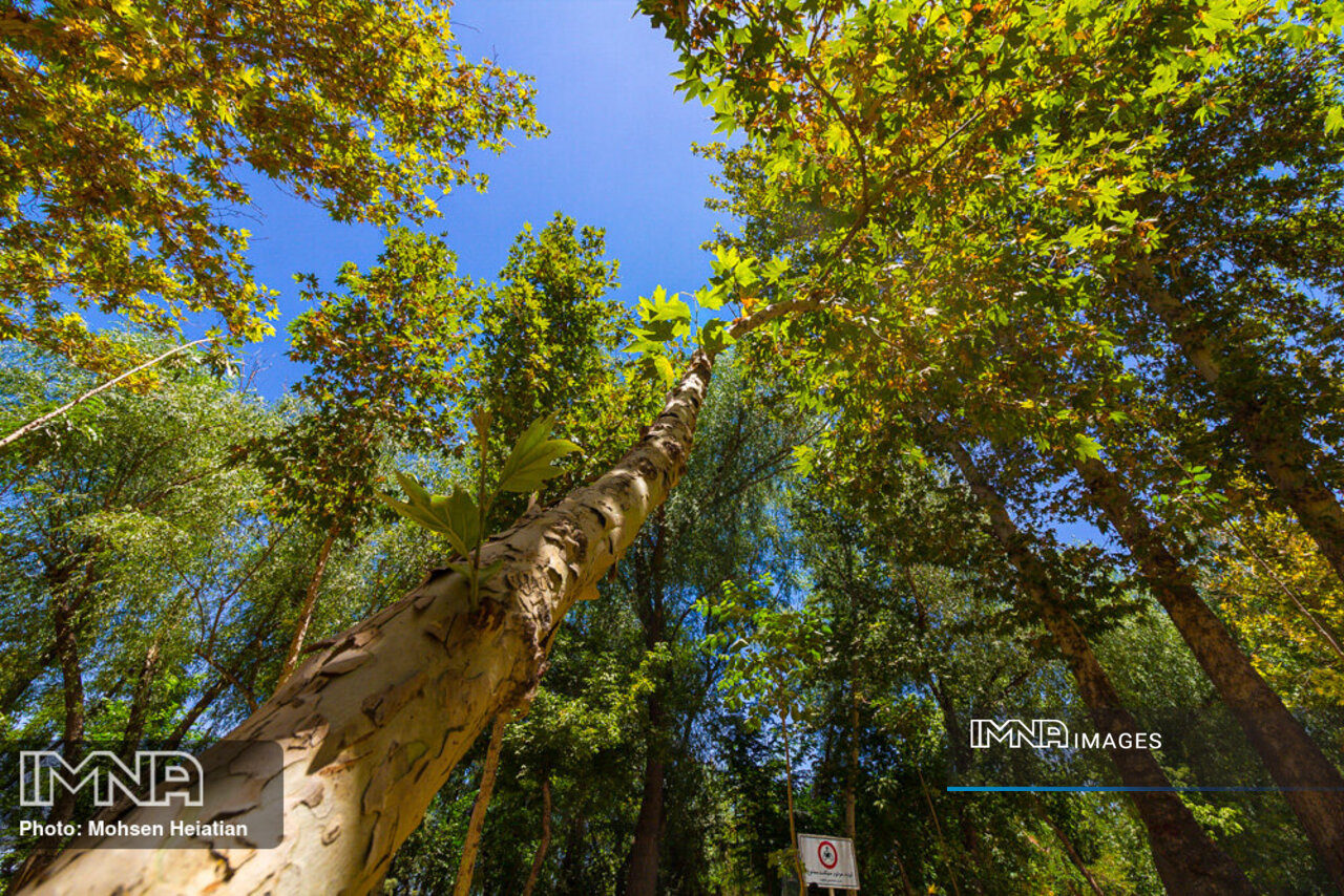 زیر آسمان آبیِ سوزان تیر، چنارهای دیرپای چهارباغ، درختان کهنسال میدان نقش‌جهان و نارون‌های حاشیه زاینده‌رودِ خاموش، قامتی خمیده و رنگ‌باخته دارند.