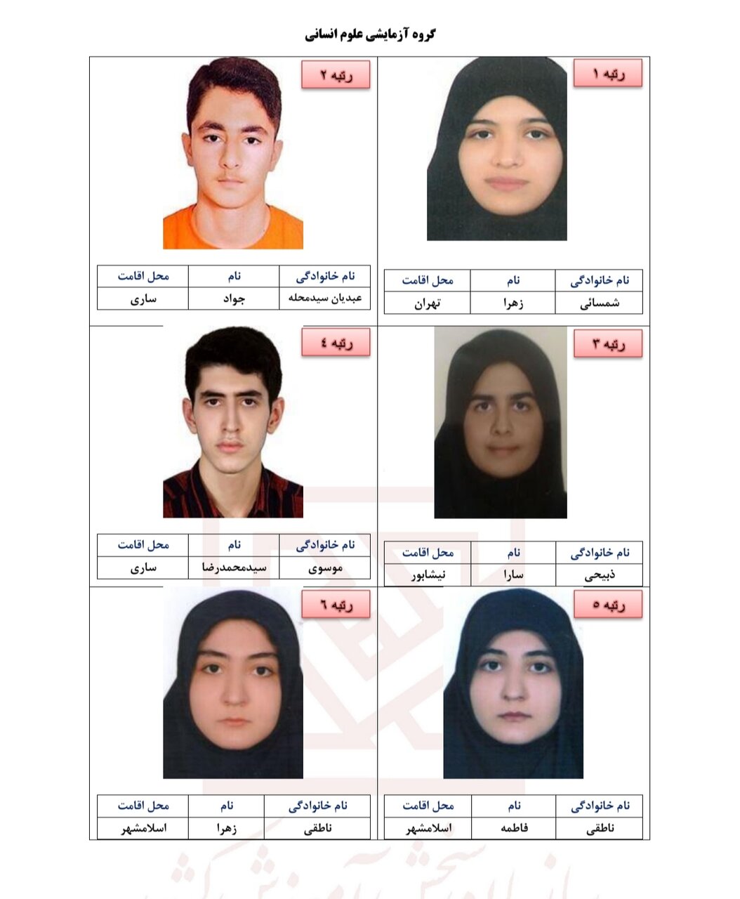 به گزارش خبرگزاری ایمنا و به نقل از سازمان سنجش، رضا محمدی با آرزوی سلامتی و موفقیت برای متقاضیان آزمون سراسری سال ۱۴۰۴ اسامی نفرات برتر در گروههای آزمایشی علوم تجربی، علوم انسانی، علوم ریاضی و فنی، هنر و زبانهای خارجی را اعلام کرد.