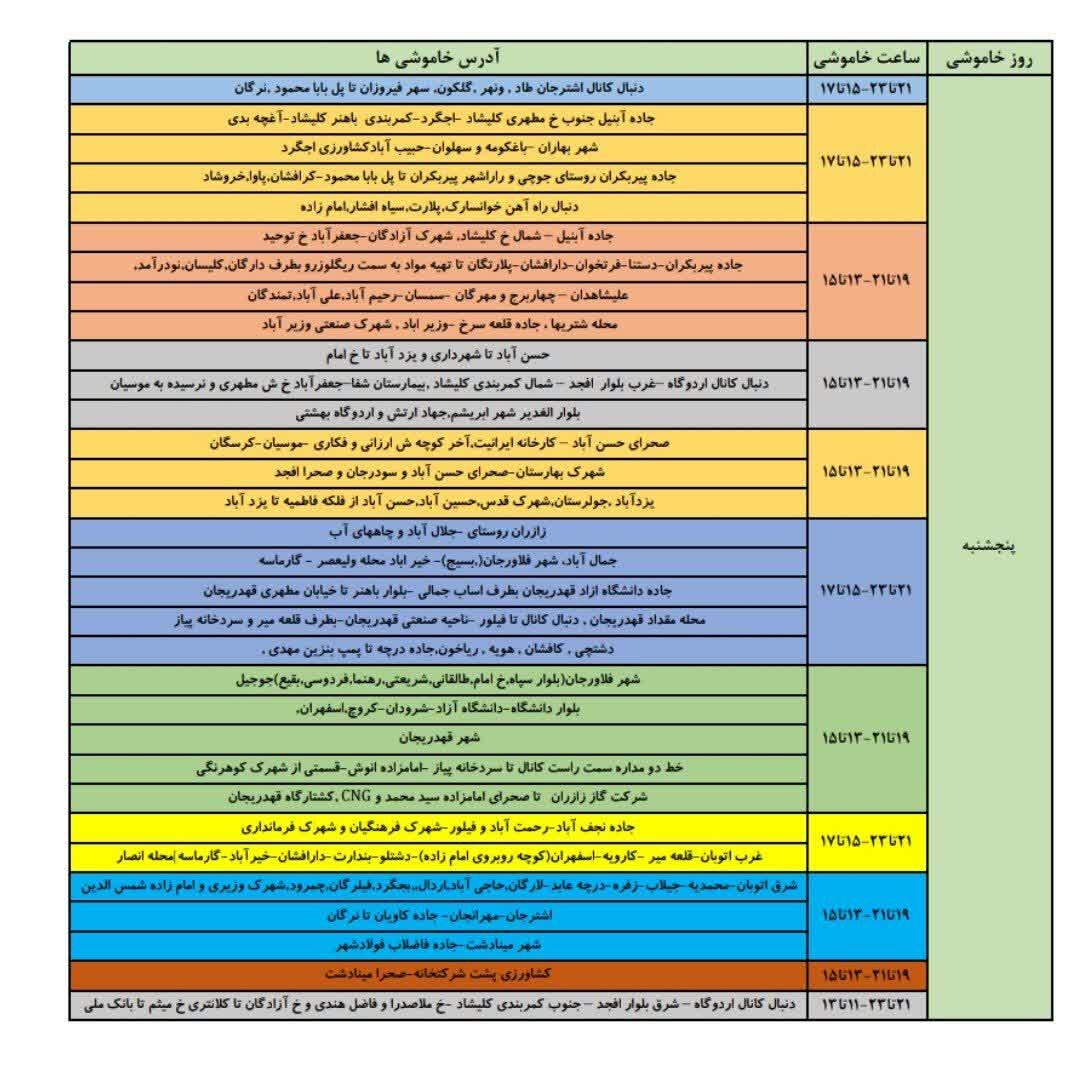 جدول قطعی برق فلاورجان پنجشنبه ۲۰ شهریور ۱۴۰۴