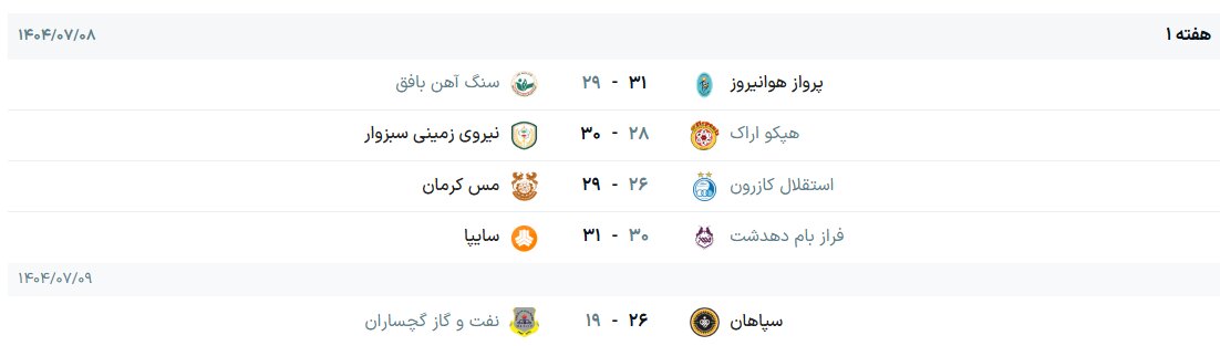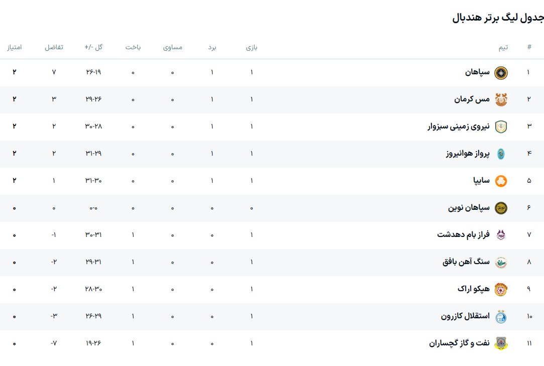 به گزارش خبرگزاری ایمنا، هفته نخست لیگ برتر هندبال _سهشنبه شب _هشتم مهر_ و چهارشنبه شب_نهم مهر_با برگزاری پنج دیدار پیگیری شد که نتایج و جدول آن به شرح زیر است: