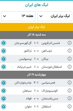 به گزارش خبرگزاری ایمنا، هفته سیزدهم لیگبرتر سهشنبه هجدهم آذر و چهارشنبه نوزدهم آذر با برگزاری هشت دیدار برگزار شد که نتایج آن به شرح زیر است: