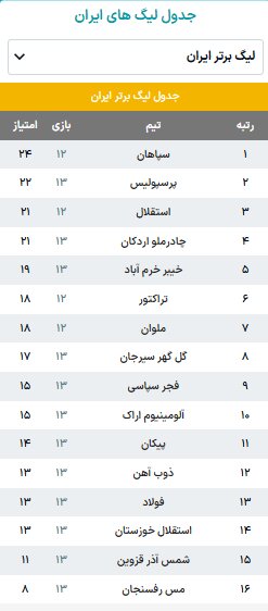 جدول و نتایج هفته سیزدهم لیگبرتر فوتبال در ادامه آمده است.