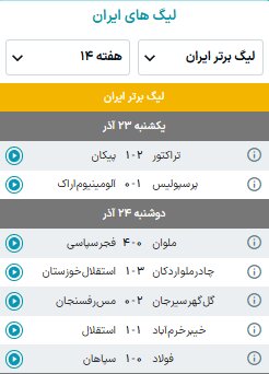 به گزارش خبرگزاری ایمنا، هفته چهاردهم لیگ‌برتر امشب _یکشنبه بیست‌وسوم آذر_ با برگزاری دو دیدار برگزار شد که نتایج آن به شرح زیر است: