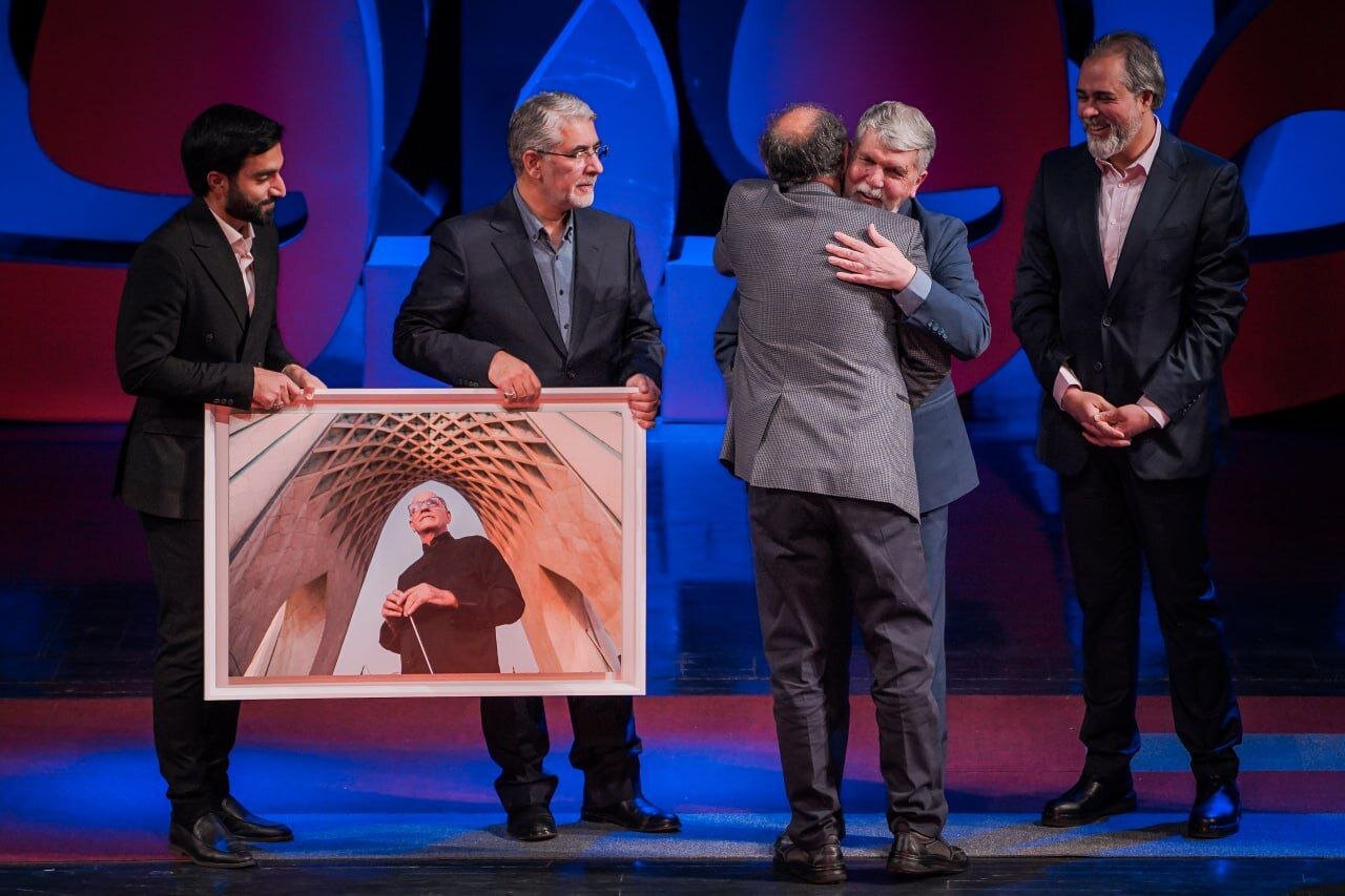 سپس سیدعباس صالحی وزیر فرهنگ و ارشاد اسلامی با اهدای یک تابلو از نصیر حیدریان که سوژه فیلم «نصیر، سمفونی پنجم» بود تجلیل کرد.