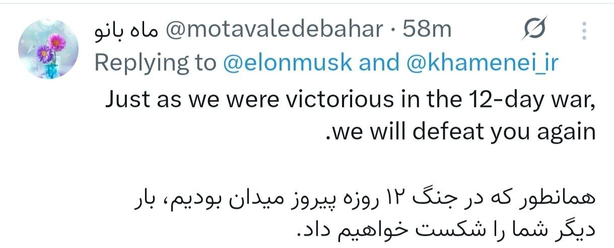 ایلان ماسک در پاسخ به پیام صریح رهبر انقلاب با مضمون «ما هرگز تسلیم دشمن نمیشویم»، با سه کلمه فارسی نوشت: «زهی خیال باطل»؛ جملهای که بیش از آنکه نشانه هوشمندی یا جسارت باشد، بازتابی از نگاه ناآگاهانه نسبت به تاریخ، ملت و واقعیتهای میدانی جمهوری اسلامی ایران است.