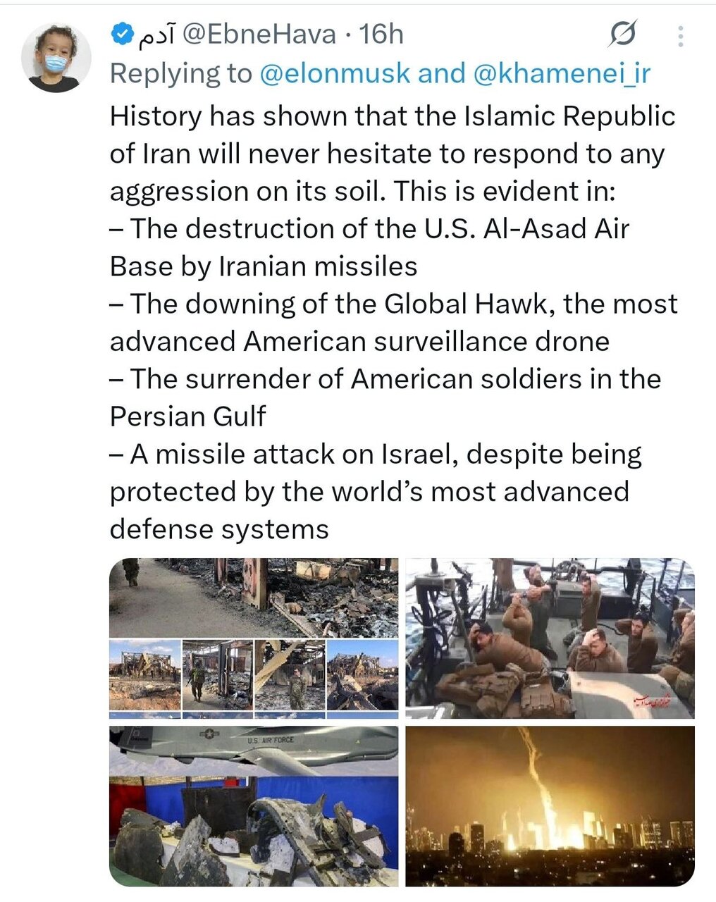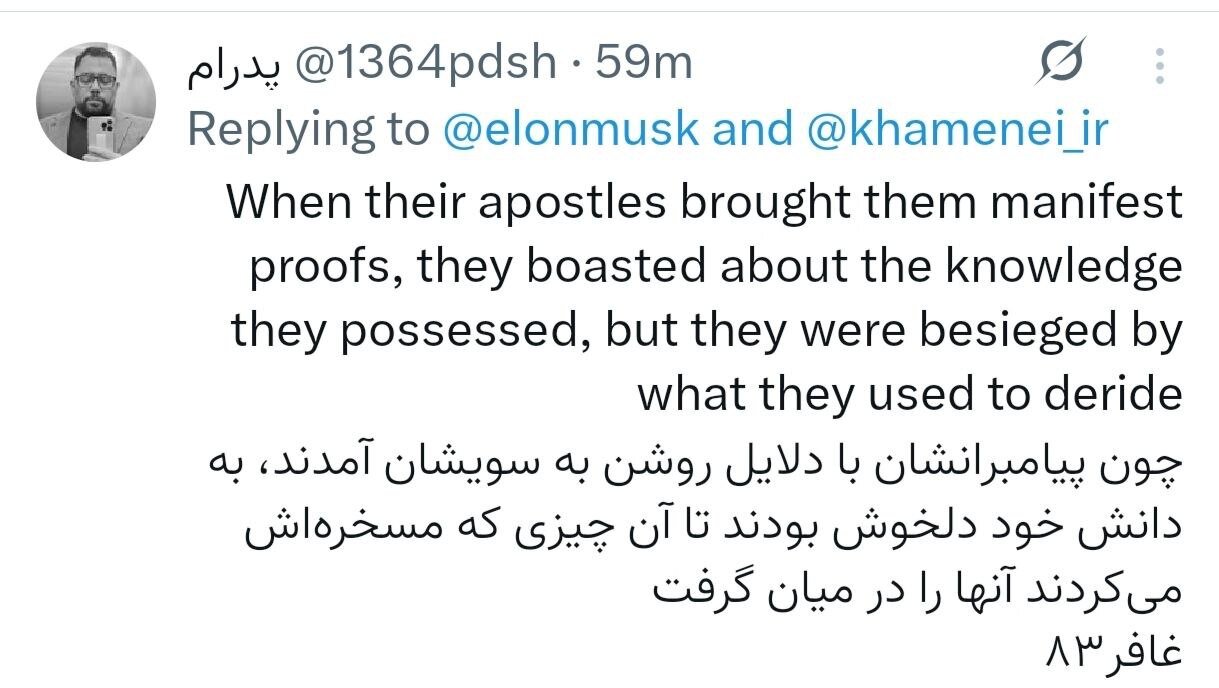 در نهایت، شاید بد نباشد ایلان ماسک پیش از نوشتن چند کلمه فارسی، کمی تاریخ بخواند؛ چرا که «زهی خیال باطل»، توصیف دقیقی است از تصور تسلیمپذیری ملتی که بارها و بارها، خلاف آن را ثابت کرده است.
