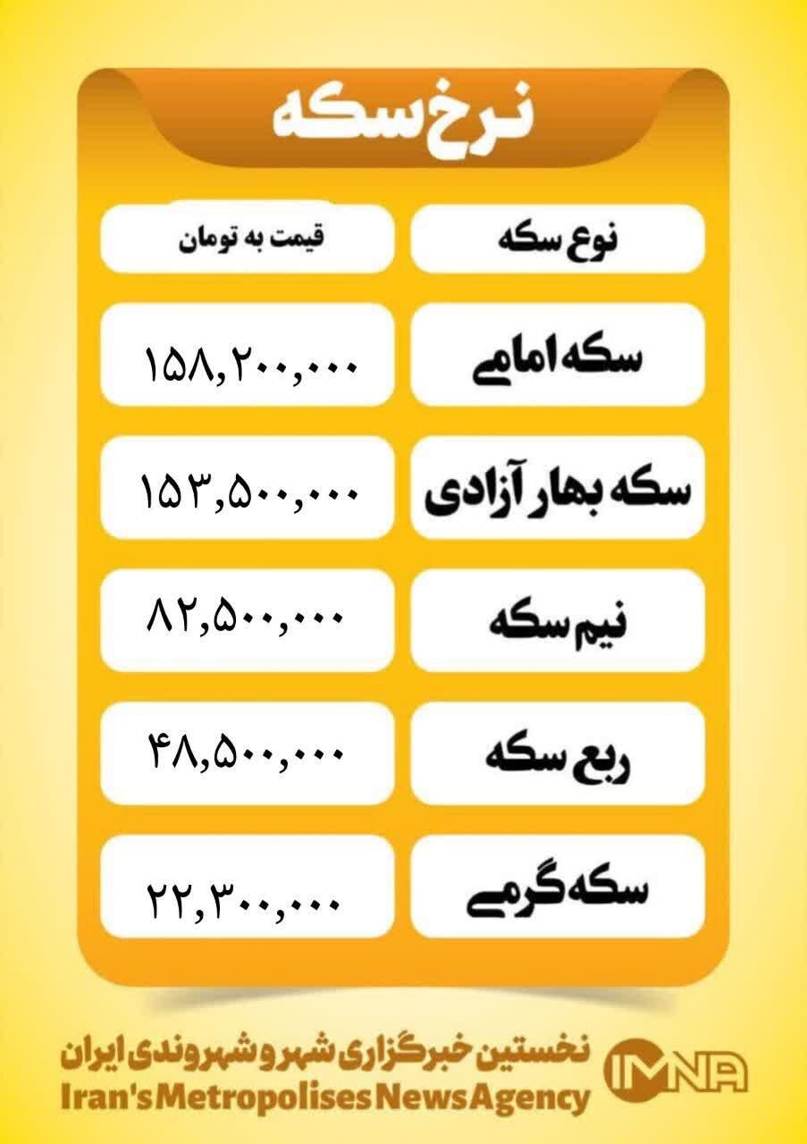قیمت سکه امروز توسط اتحادیه صنف فروشندگان و سازندگان طلا، جواهر، نقره و سکه تهران اعلام شد.