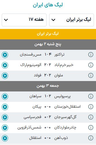 نتایج لیگ برتر