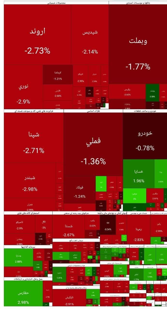 از تغییر شاخص‌های دیگر بورس می‌توان به افت ۷ هزار و ۸۲۲ واحدی شاخص کل هم‌وزن اشاره کرد.