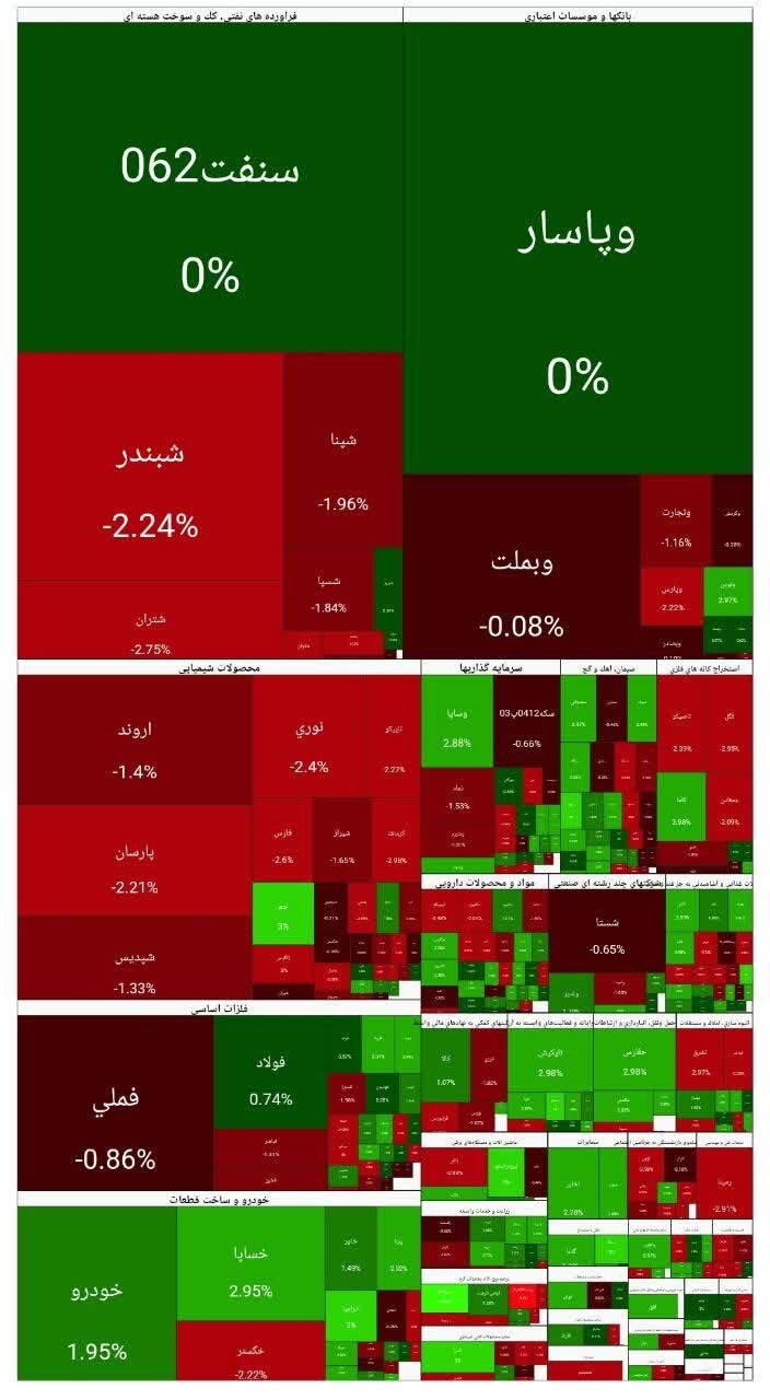 از تغییر شاخصهای دیگر بورس میتوان به افت ۴ هزار و ۲۶۴ واحدی شاخص کل هموزن اشاره کرد.