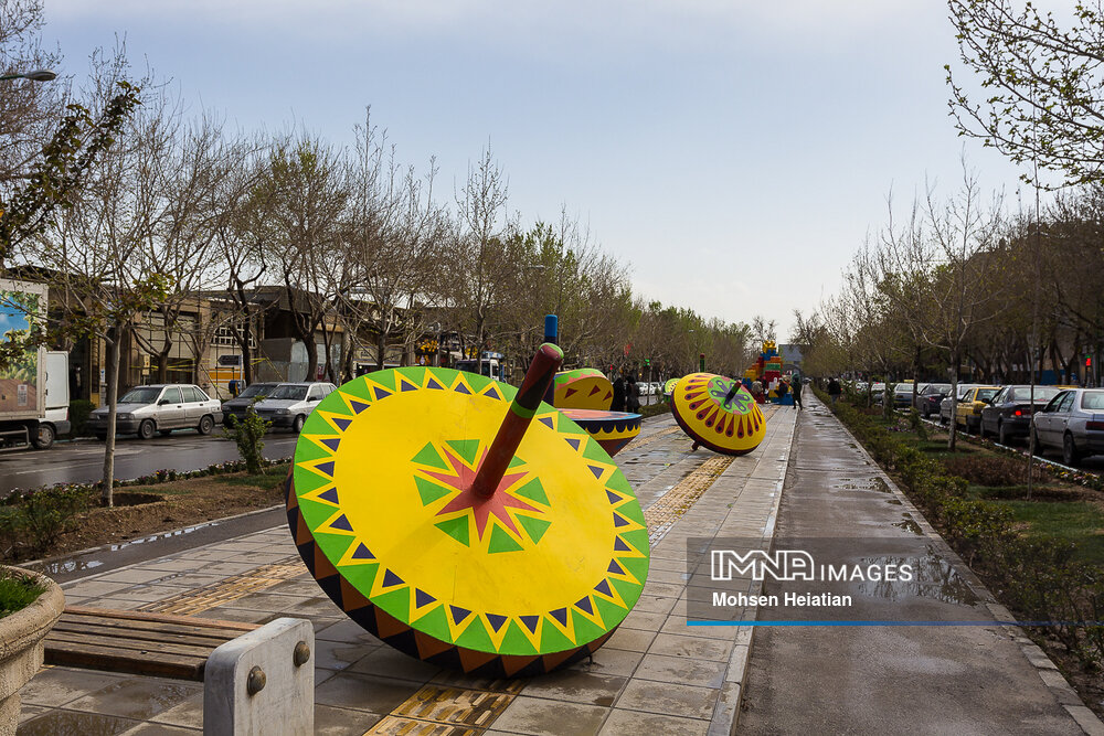 همزمان با فرارسیدن سال نو طراحی و ساخت المانهای نوروزی و نمادهایی از رسیدن فصل زیبای بهار در شهر اصفهان اجرایی شده است و با نصب آنها در نقاط مختلف شهر، ضمن فضا آرایی و ایجاد نشاط در روحیه شهروندان، نصف جهان به استقبال بهار رفته است.