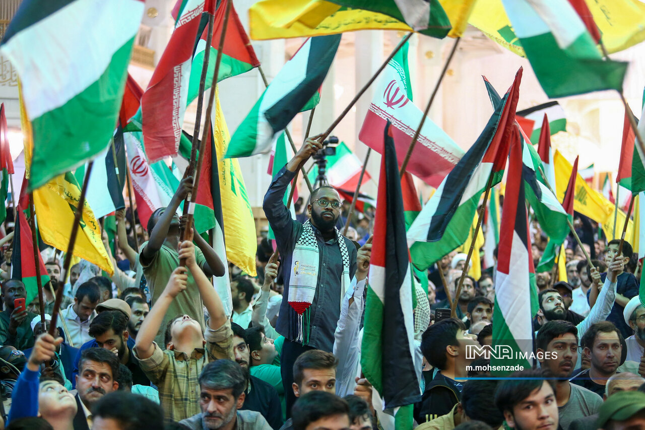 خروش عظیم جوانان مقاومت از سراسر ایران و صد ملیت جهان جهت اعلام آمادگی برای انتقام سخت از رژیم صهیونیست شامگاه روز پنج شنبه در حرم مطهر حضرت معصومه (س) برگزار شد.