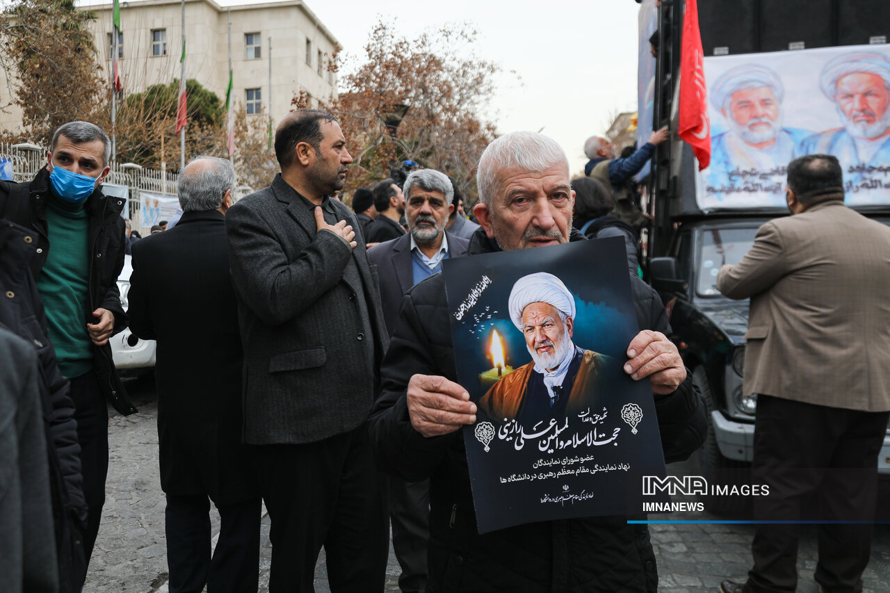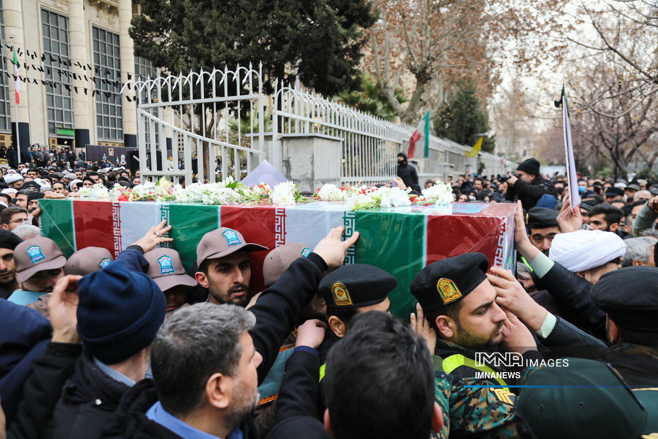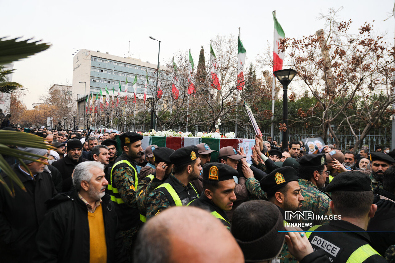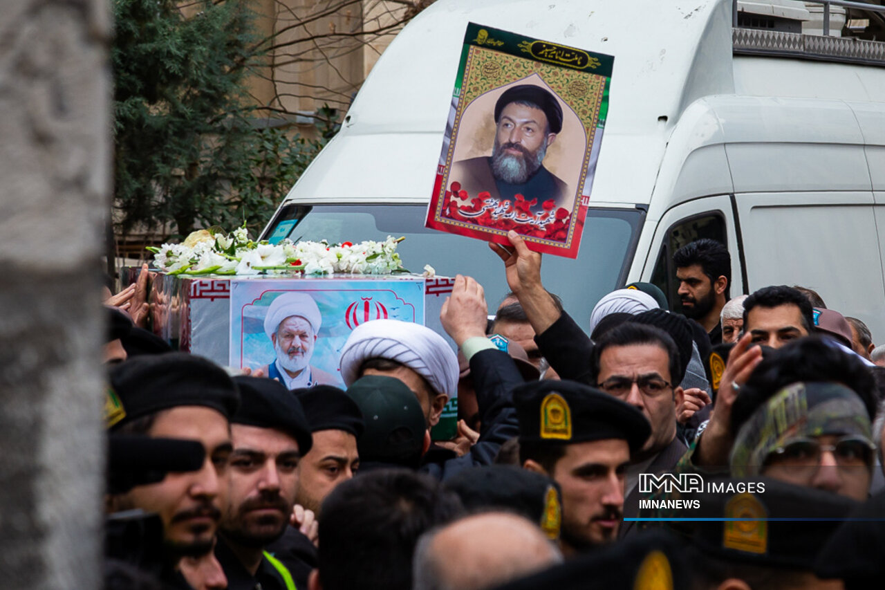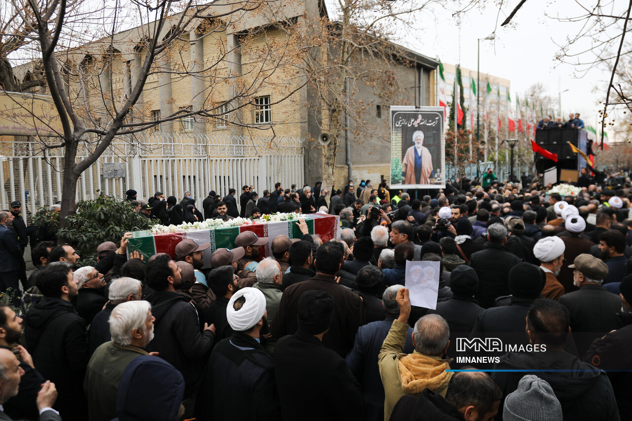 پیکر مطهر شهید حجت الاسلام علی رازینی و شهید حجت الاسلام محمد مقیسه دو قاضی شجاع و پرسابقه در مبارزه با جرایم علیه امنیت ملی، جاسوسها و تروریسم صبح امروز _دوشنبه یکم بهمن_ از ضلع شرقی دیوان عالی کشور واقع در خیابان داور به سمت قبور مطهر شهدای گمنام میدان ارک تشییع شد.