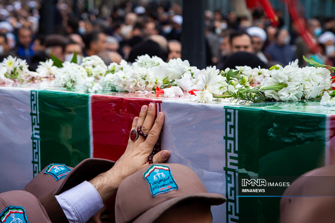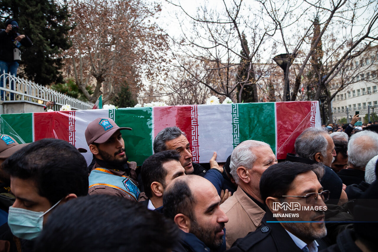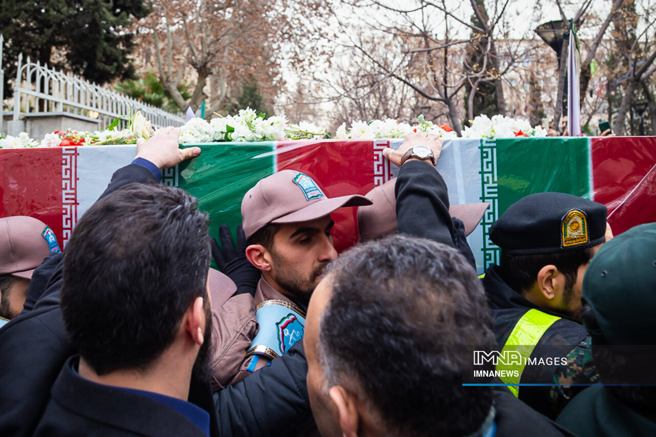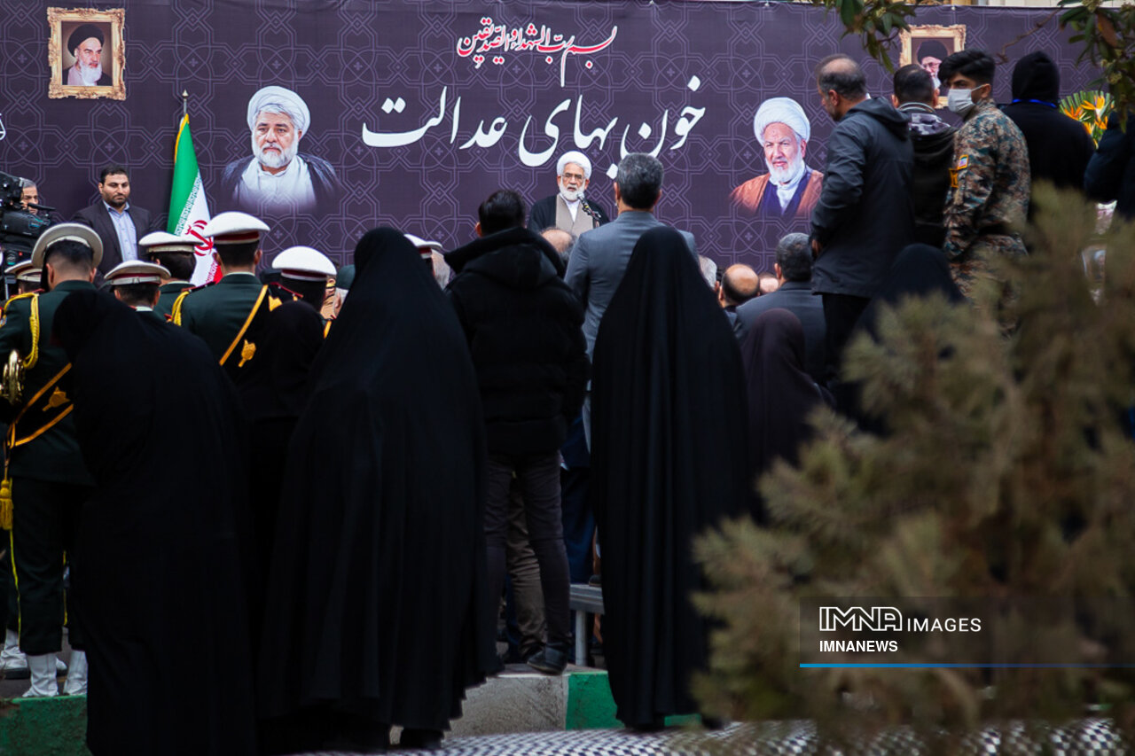 پیکر مطهر شهید حجت الاسلام علی رازینی و شهید حجت الاسلام محمد مقیسه دو قاضی شجاع و پرسابقه در مبارزه با جرایم علیه امنیت ملی، جاسوسها و تروریسم صبح امروز _دوشنبه یکم بهمن_ از ضلع شرقی دیوان عالی کشور واقع در خیابان داور به سمت قبور مطهر شهدای گمنام میدان ارک تشییع شد.