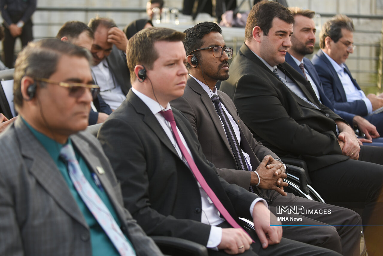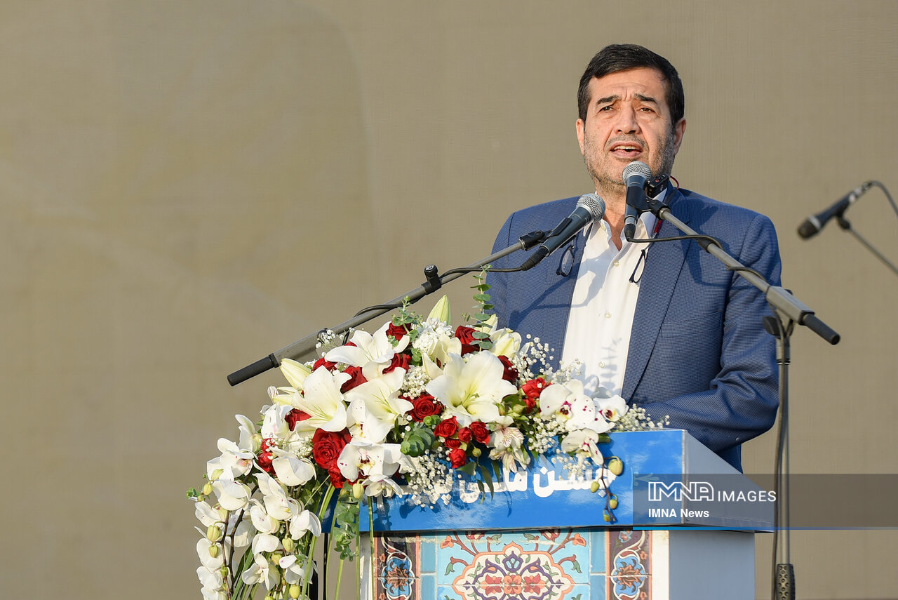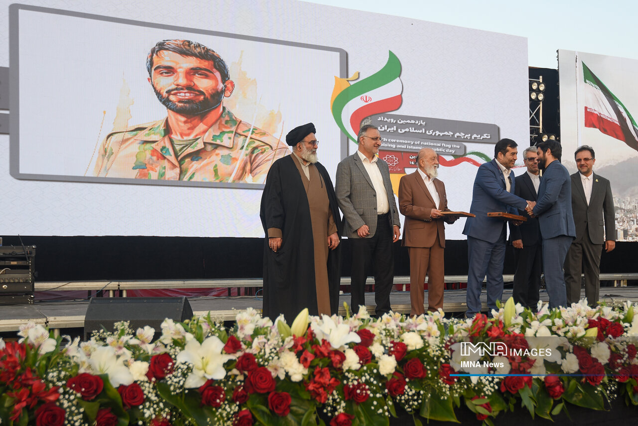 آیین بزرگداشت روز جمهوری اسلامی و جشن ملی پرچم با حضور مسئولان کشوری و لشکری و سفرای کشورهای خارجی در ورودی باغ کتاب جنب دریاچه هنر برگزار شد.