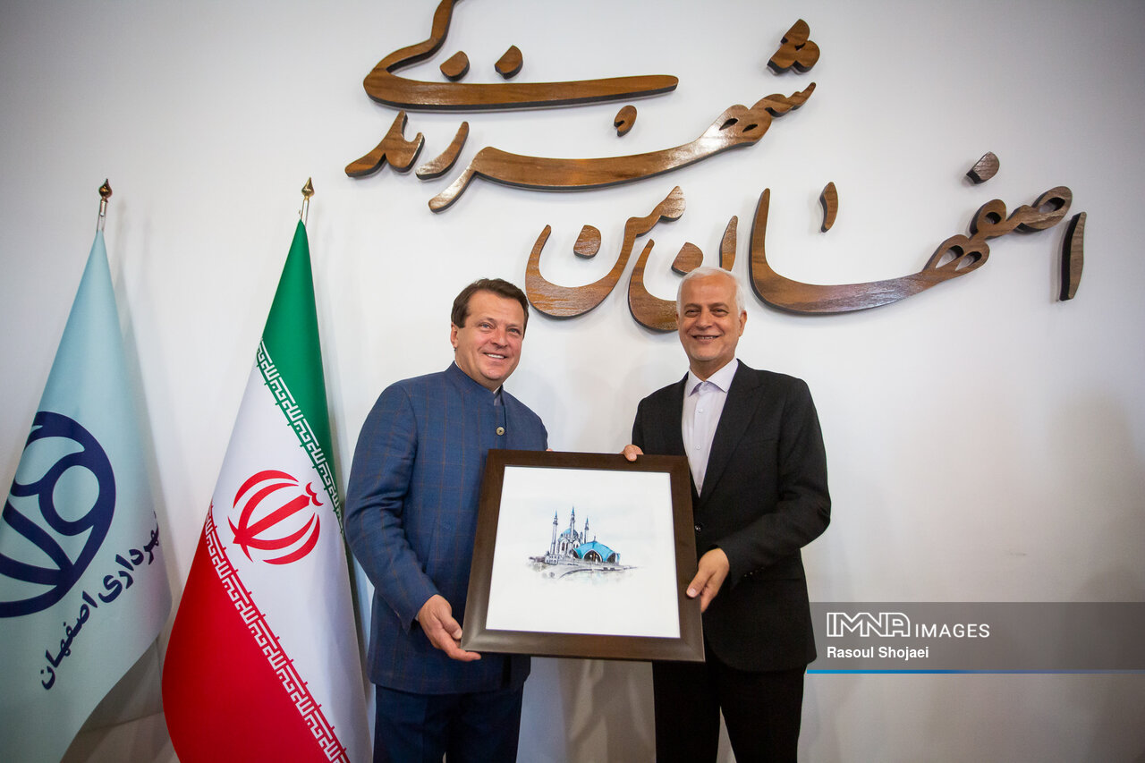 علی قاسمزاده شهردار اصفهان صبح امروز _چهارشنبه بیستم فروردین_ در حاشیه مراسم عقد خواهر خواندگی با شهر کازان روسیه با ایلسور متشین، شهردار این شهر دیدار و گفتوگو کرد.