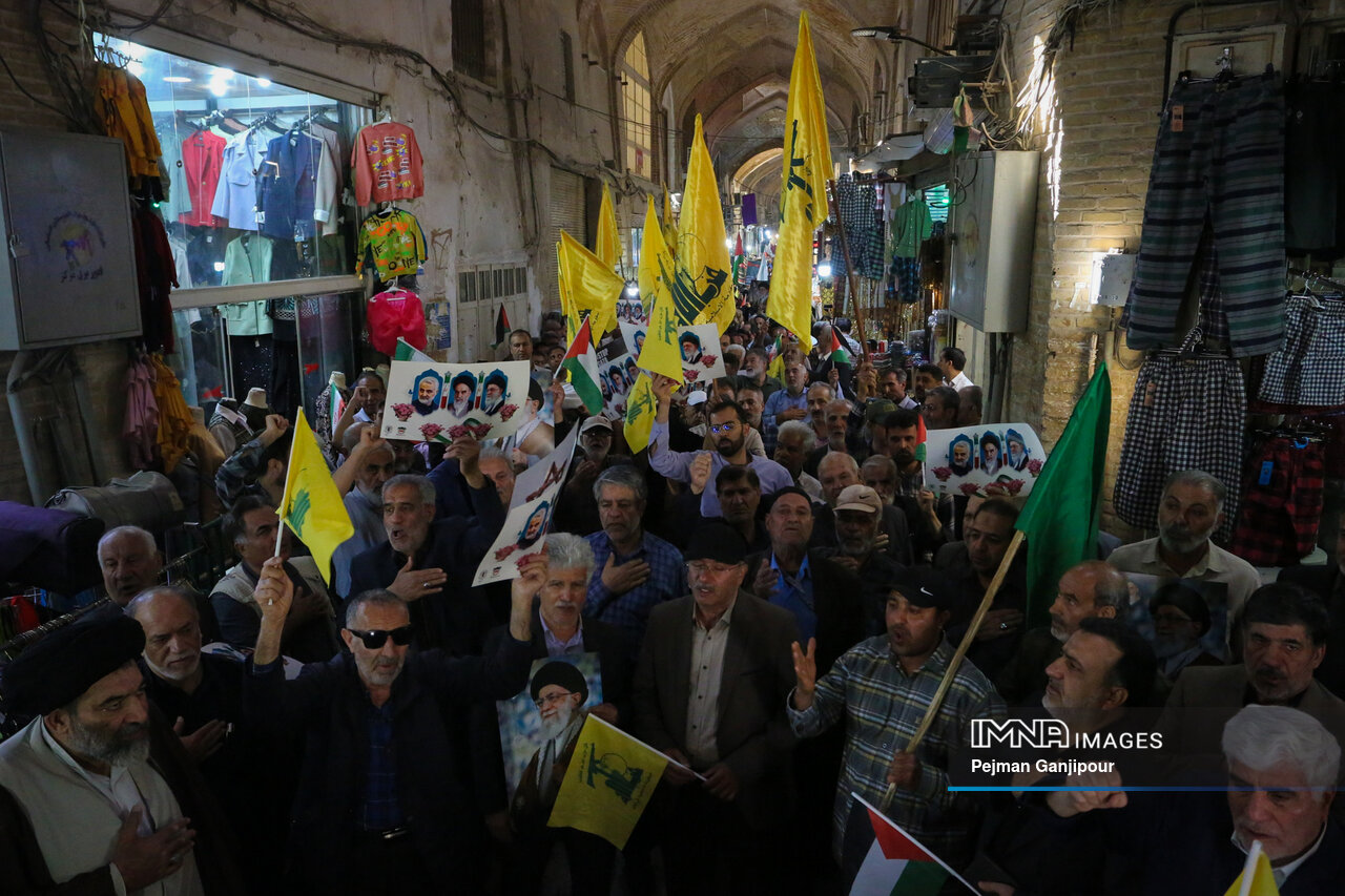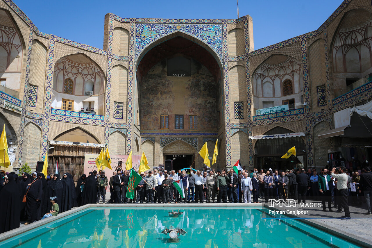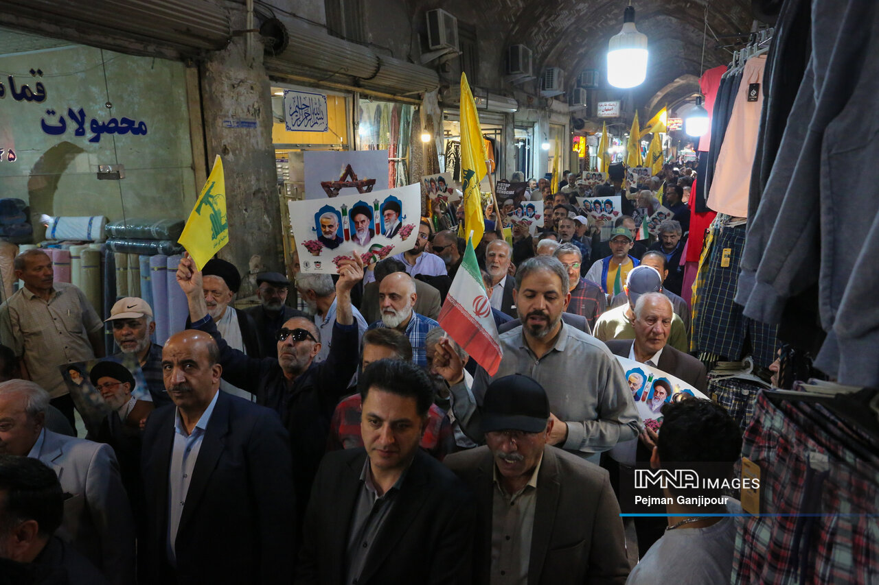 تجمع اعتراضی بازاریان اصفهان در محکومیت جنایات رژیم صهیونیستی صبح امروز _پنجشنبه بیستویکم فروردین_ در بازار اصفهان برگزار شد.