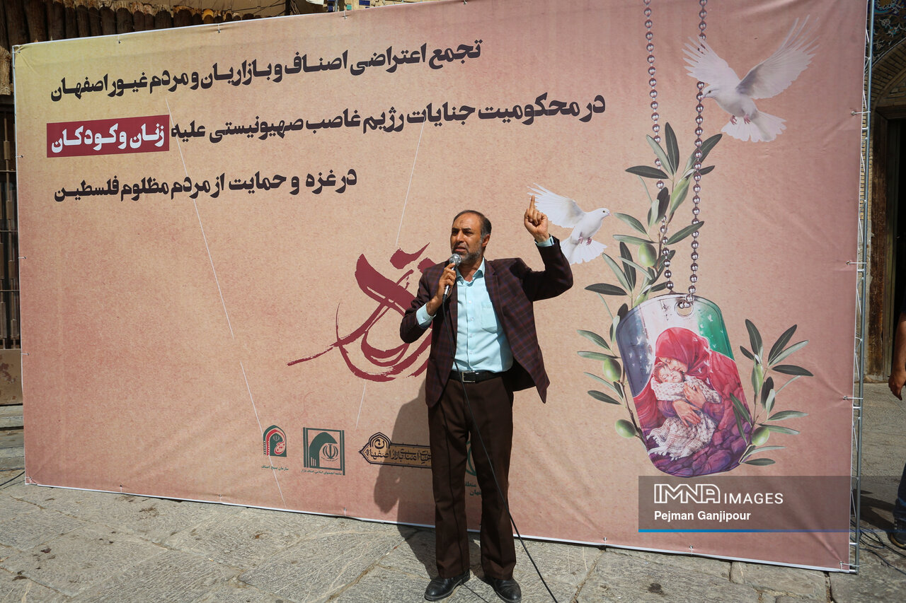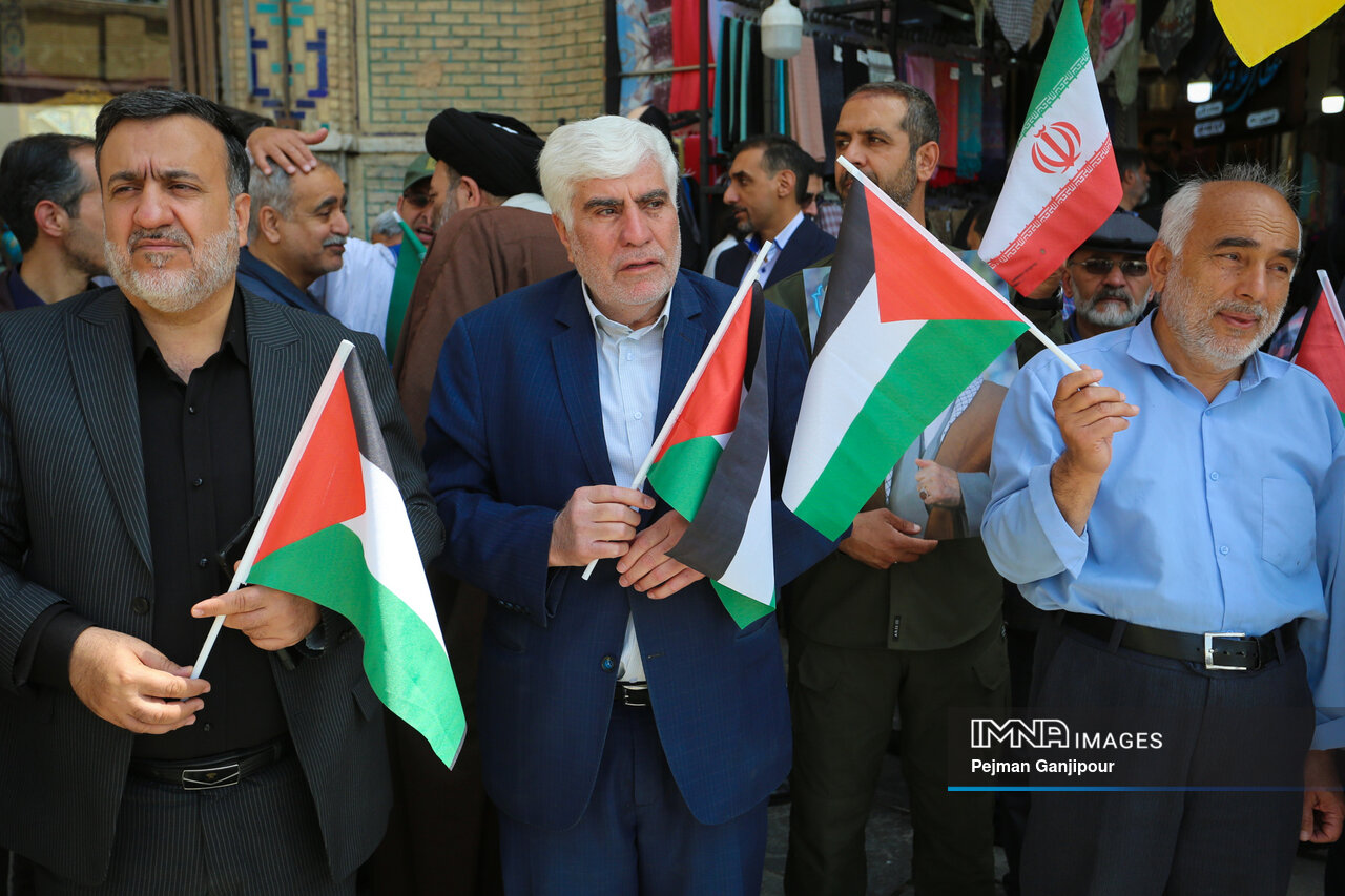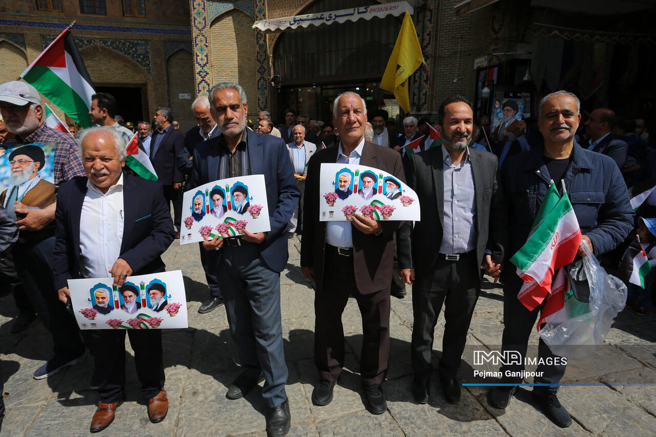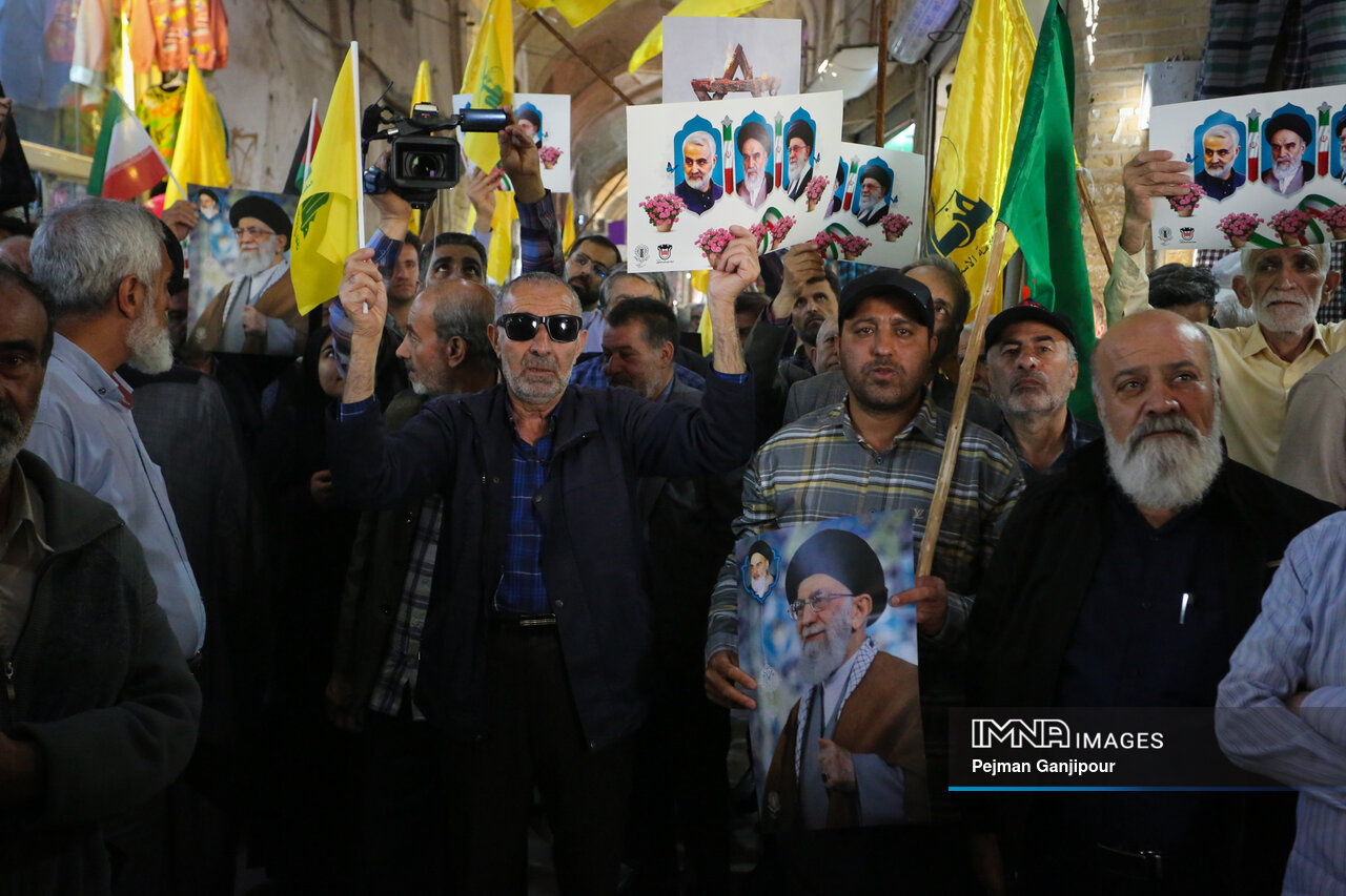 تجمع اعتراضی بازاریان اصفهان در محکومیت جنایات رژیم صهیونیستی صبح امروز _پنجشنبه بیستویکم فروردین_ در بازار اصفهان برگزار شد.