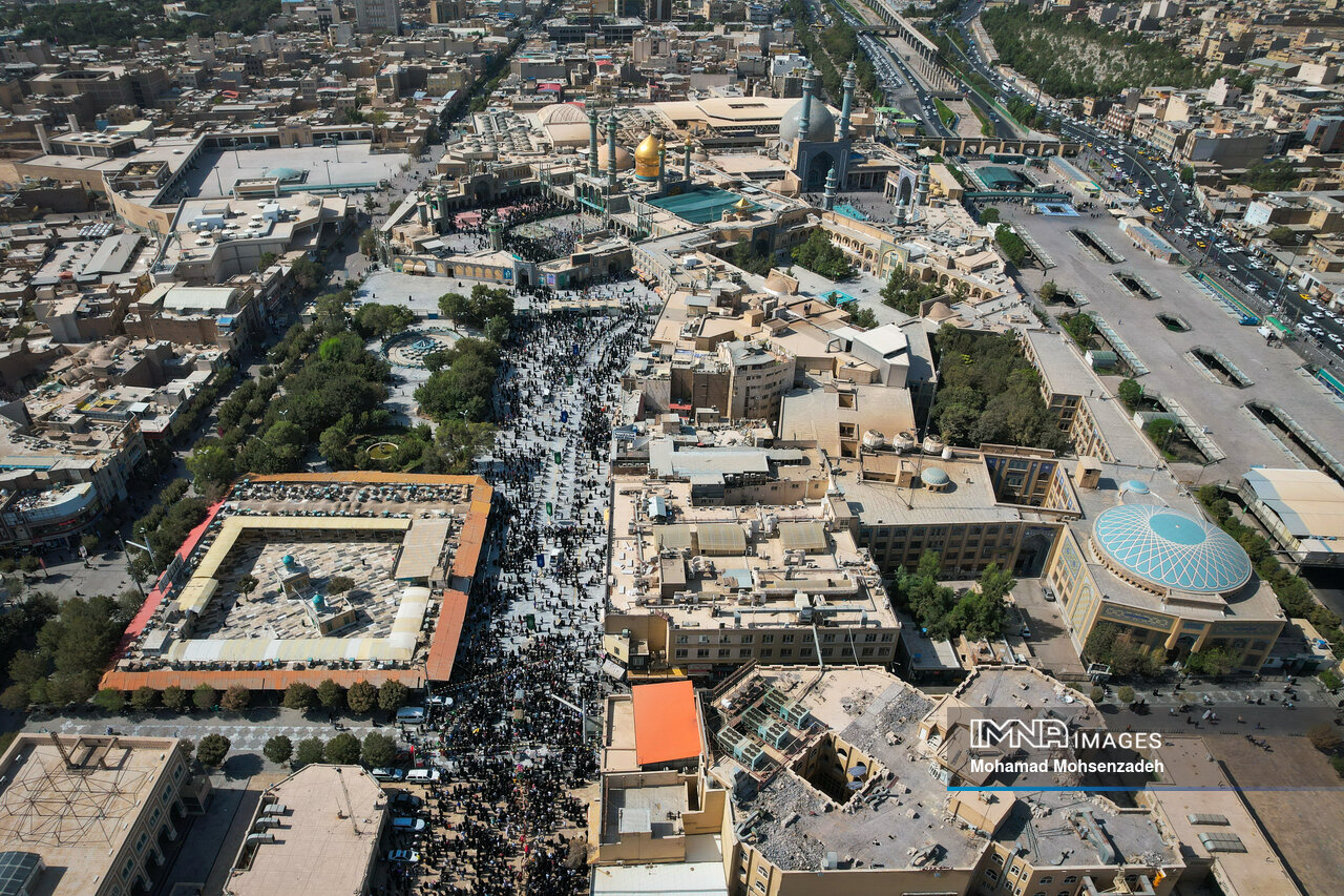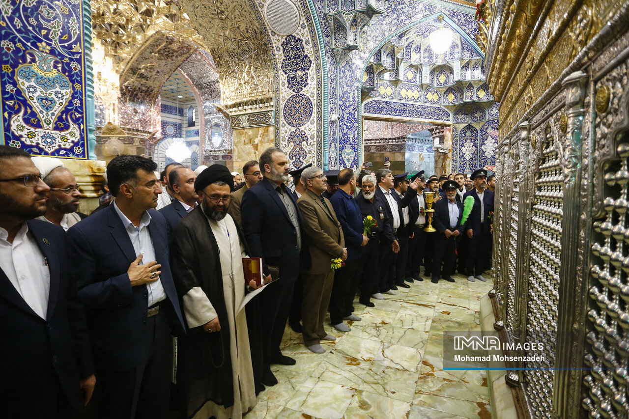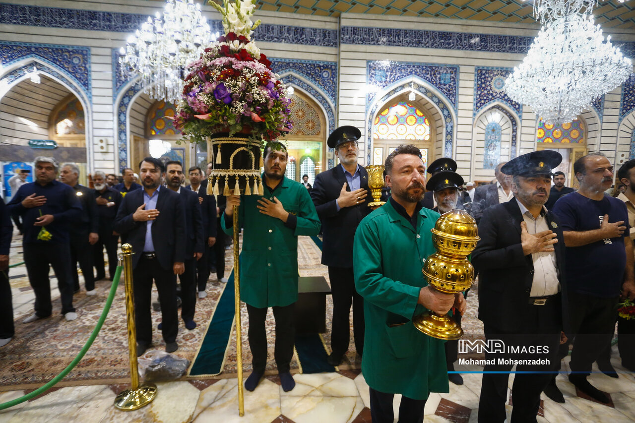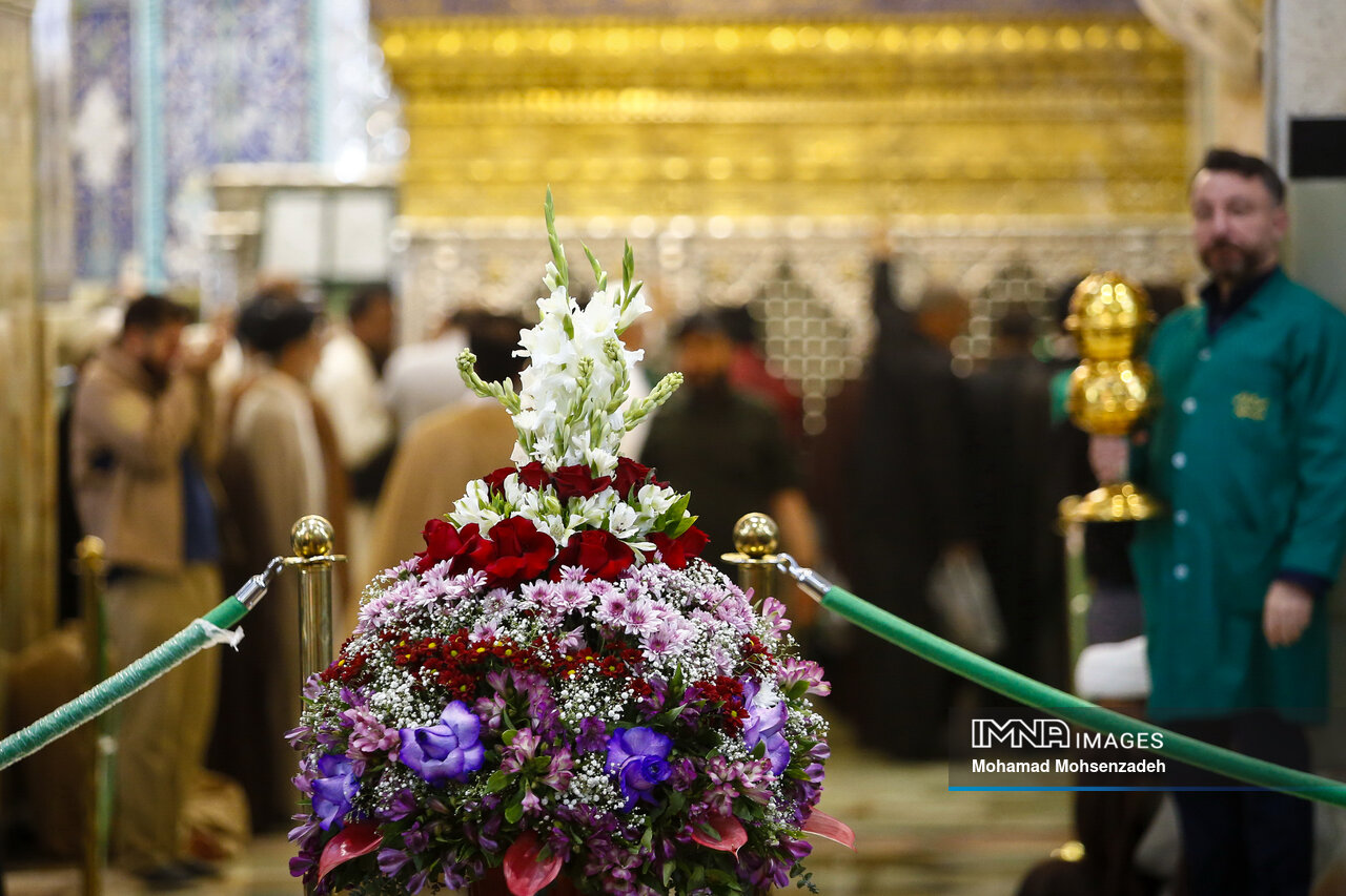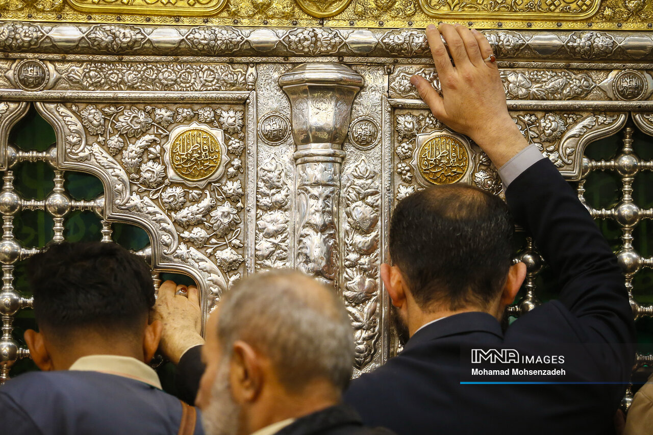 زمانی که به دستور «امیر مظفر احمد بن اسماعیل» بزرگ خاندان آل مظفر، بزرگترین استاد کاشیساز آن زمان «محمد بن ابی طاهر کاشی قمی» کار ساخت و پرداخت کاشیهای متنوع مرقد را آغاز کرد و بعد از هشت سال، با آماده شدن کاشیها، آنها کار گذاشته شدند. در سال ۹۶۵ هجری شاه طهماسب صفوی، در چهار طرف مرقد ضریحی آجری آراسته به کاشیهای هفت رنگ و کتیبههای معرق بنا کرد و در اطراف آن منافذی قرار گرفت تا هم مرقد دیده شود و هم زائران نذورات خود را داخل ضریح بریزند. پس از آن در سال ۱۲۳۰ قمری فتحعلی شاه همان ضریح را نقرهپوش کرد، ۵۰ سال بعد و زمانی که ضریح به مرور زمان فرسوده شد، در سال ۱۲۸۰ شمسی ضریحی که از نقره ضریح سابق و نقرههای موجود در خزانه ساخته شده بود، به جای آن نصب شد.