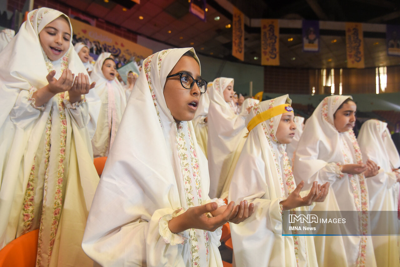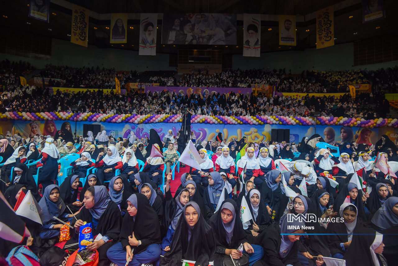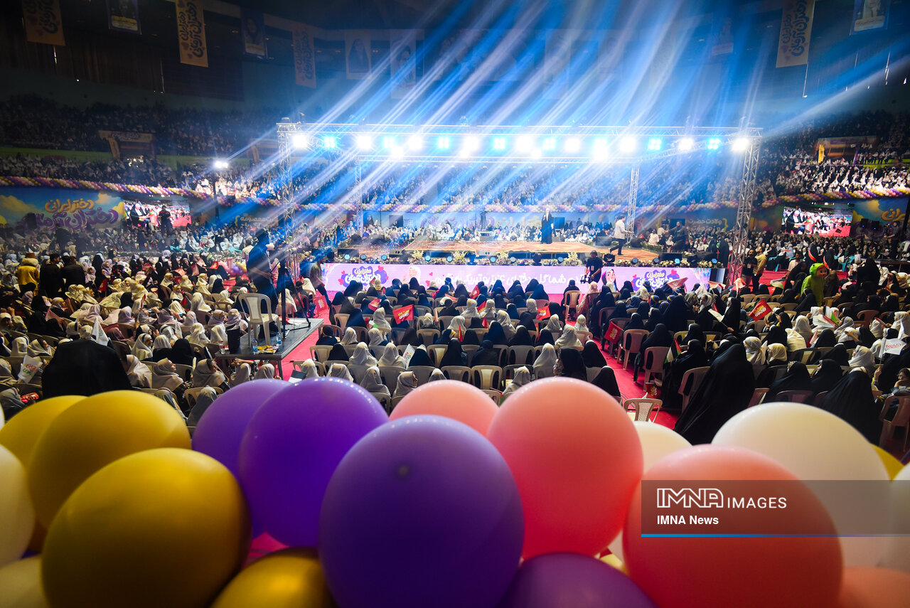 مراسم ولادت حضرت معصومه (س) امروز _سه‌شنبه نهم اردیبهشت_ با حضور دختران در سالن دوازده هزار نفری مجموعه ورزشی آزادی برگزار شد.