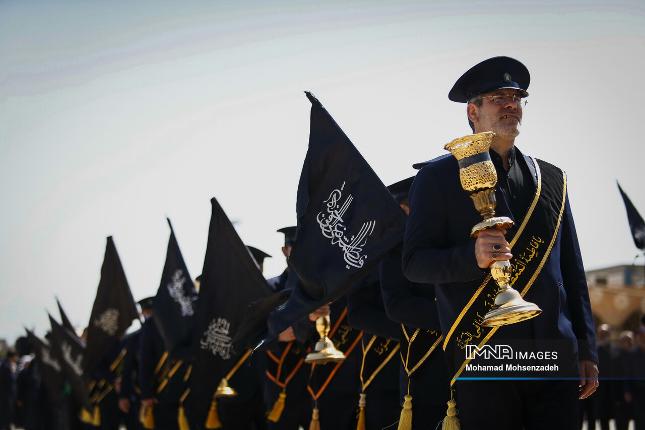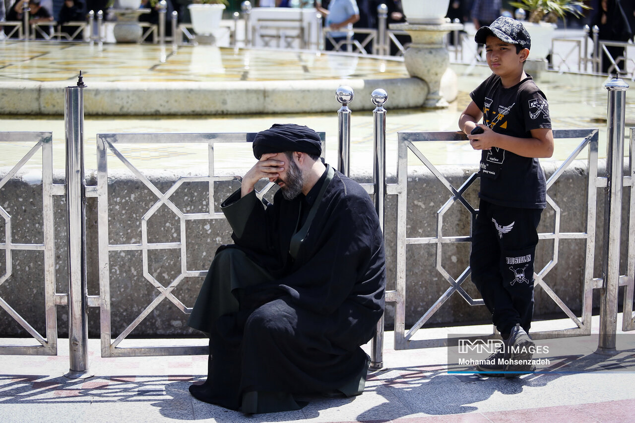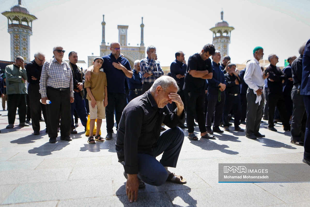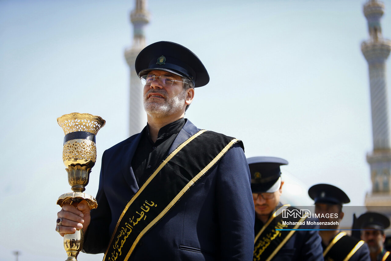 همزمان با روز شهادت امام محمد تقی جوادالائمه(ع)، خادمان حرم کریمه اهل بیت(ع) از مسجد امام حسن عسکری(ع) برای عرض تسلیت به سمت حرم حضرت فاطمه معصومه(س) حرکت کردند و در صحن امام رضا(ع) به عزاداری پرداختند.